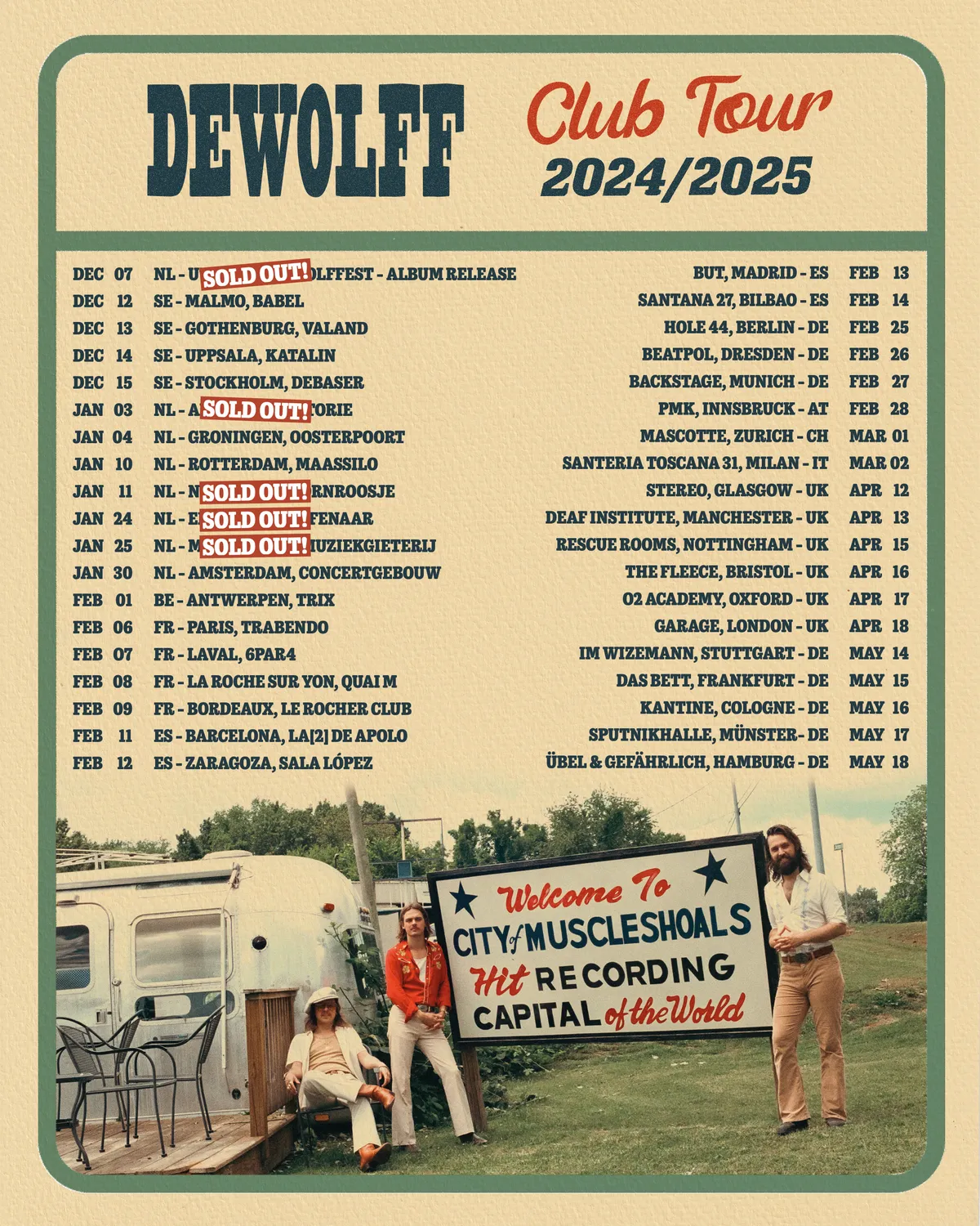Na de release van het album gaat DeWolff op een grote Europese clubtour van 38 concerten en ze zullen op 25 januari te zien zijn in de Muziekgieterij in Maastricht.