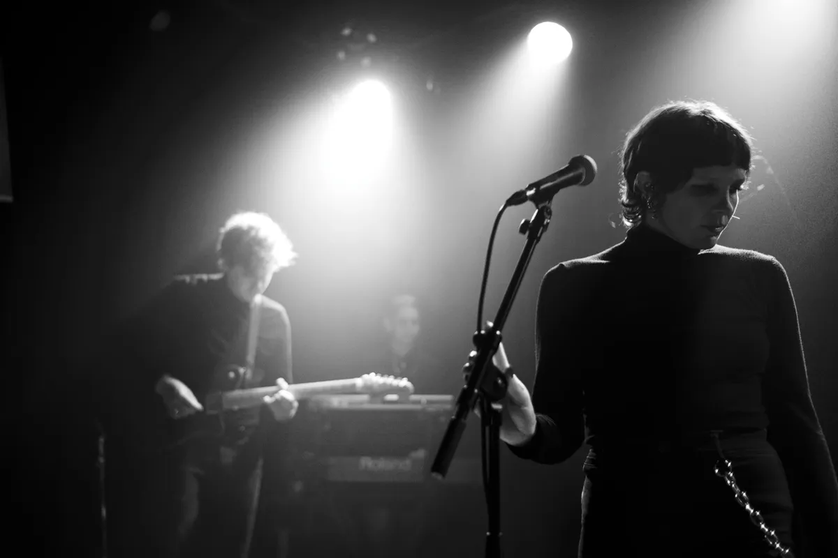Het Zuid-Afrikaanse darkwave-collectief Holograph blijft zichzelf heruitvinden. Holograph ontstaat uit isolatie: drie huisgenoten, gekluisterd aan hun thuisstad Kaapstad, die samen op pad gaan om hun gedeelde liefde voor postpunk, goth en new wave te verkennen. Sinds de overstap van Kaapstad naar Amsterdam treden ze uit de schaduw als futuristische goth-wave profeten, met klanken voor nachtzielen, neonharten en zij die licht weten te vinden in de duisternis. De Cinetol is vanavond het perfecte canvas voor het tweede Amsterdamse optreden van Holograph. De intieme zaal is goed gevuld en klaar voor de release van de EP Teeth, die in oktober vorig jaar is uitgekomen.