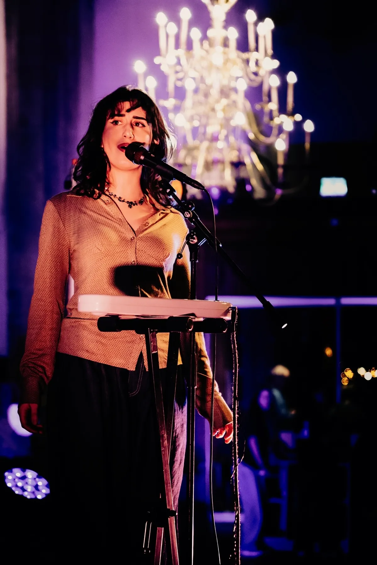 Naaz vertelt dat ze op collagetour zijn: “We zijn fan van elkaar en stonden vaak bij elkaar in het publiek. Hier is het concept van een tour uit voortgekomen, waarbij we met z’n drieën samen spelen.” Als Naaz begint aan haar zelfgeschreven Koerdische nummer ‘Azadî’, verlaten LUWTEN en Pitou het podium om alle aandacht aan haar te laten. Het toont het onderlinge respect tussen de zangeressen, voor elkaars kunst en de belangrijke boodschap die Naaz met haar songtekst probeert mee te geven. De titel komt van het Koerdische gezegde ‘jin, jiyan, azadî’, wat ‘er is geen leven zonder de vrouw, en niemand is vrij tot iedereen vrij is’ betekent. Het protestnummer eindigt met prachtige hoge, zuivere noten: een excentriek geluid waarbij de rillingen over je rug dansen.