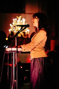 Het is meteen duidelijk dat de Grote Kerk zich leent voor de combinatie van folk en dromerige pop die Pitou, LUWTEN en Naaz spelen, een middenweg tussen de discografie van de drie artiesten. Ze wisselen af tussen leadzang en harmonie waardoor een prettig samenspel ontstaat: de vijf stemmen op het podium, achtergrondzangers meegeteld, klinken als tientallen. In combinatie met de galm van de kerk brengt het een vorm van sereniteit met zich mee. Soms voelt de performance echter wat statisch aan: de artiesten verplaatsen zich zelden, waardoor de energie laag blijft.