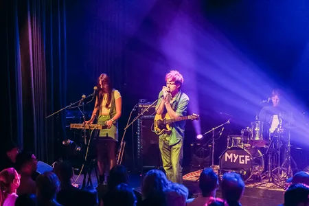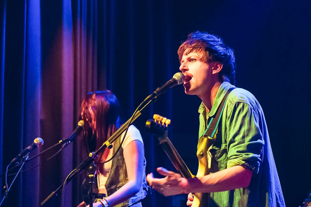 Een EP-release is altijd een bijzondere gebeurtenis, maar voor My Girlfriend voelt de show in PAARD op vrijdag 21 maart als een echte mijlpaal. De Haagse band, die in de afgelopen jaren is gegroeid van een experimenteel collectief tot een vijfkoppige synthpopformatie, presenteert Somewhere In April met een optreden vol energie, emotie en sterke samenhang. De kleine zaal van PAARD is goed gevuld, tot verrassing van de band, met niet alleen fans, maar ook familie en vrienden, allemaal benieuwd naar de nieuwste gedaante van de band.
