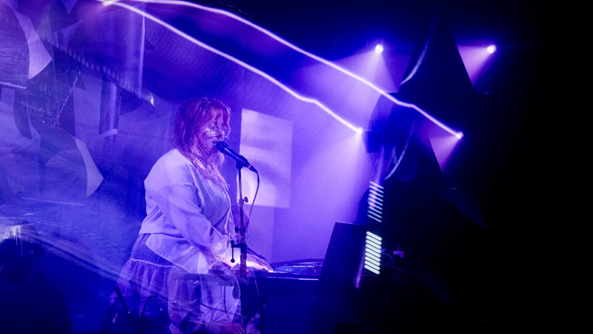 Na de totaalervaring van Pareidolia is het de beurt aan huny. Dit optreden gaat wat anders worden is al meteen duidelijk. We zien onder andere een vissenkom gevuld met water en een gitaar met een strijkstok. Huny - Luz Mercedes - staat en zal meer gaan performen zo te zien. Het optreden begint echter ook relatief rustig. Dit keer met gefluister en stem-samples. De voordracht en de elektronische sound zijn ten opzichte van Pareidolia meer collageachtig. Huny weet ook een intrigerende set neer te zetten, maar de beleving is anders. We worden niet ondergedompeld, maar volgen huny op een meer persoonlijke reis, als observanten. Flarden van gedachten worden door hen uitgesproken, half fluisterend en fragiel. “This is my home. The city is asleep. Letting myself fall.” Uit de vissenkom komt een borrelend, futuristisch geluid. Het zal regelmatig terugkeren. Ook hier worden beelden en licht geprojecteerd op diverse schermen.