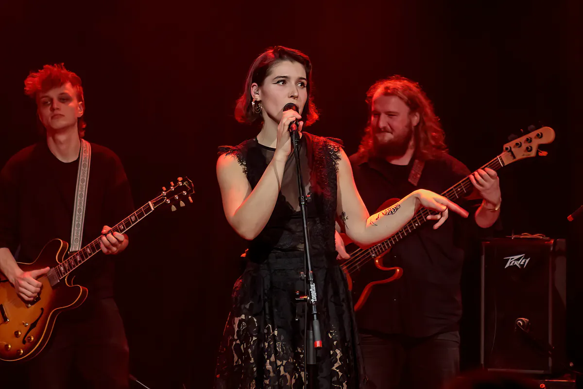 Wij komen binnenvallen in de kleine zaal bij Katie Koss (de artiestennaam van Katja Poltavets) terwijl ze net begint aan Nelly Furtado-cover ‘I Am Like A Bird’. Haar eigen liedjes hebben al net zo’n vrolijke en lichtvoetige feel als de songs van de Canadese. Ze maakt tijdens haar optreden maar weinig referenties aan de oorlog in haar thuisland. Of beter het thuisland Oekraïene van haar ouders om preciezer te zijn, want aan het vloeiende ABN dat Katie Koss spreekt valt op te maken dat ze in Nederland is opgegroeid. Getuige haar songs speelt háár strijd zich vooral af op het relationele vlak waarbij mannen niet zelden met een humoristisch-feministische knipoog op hun nummer worden gezet. Het beste voorbeeld daarvan is wellicht de song ‘Girl U Did Good’, waarbij in eerste instantie alleen de vrouwen maar uiteindelijk toch ook de mannen het refrein (enthousiast) meezingen. Met zoveel vrolijke female empowerment moet het met de wereld wel goed komen.