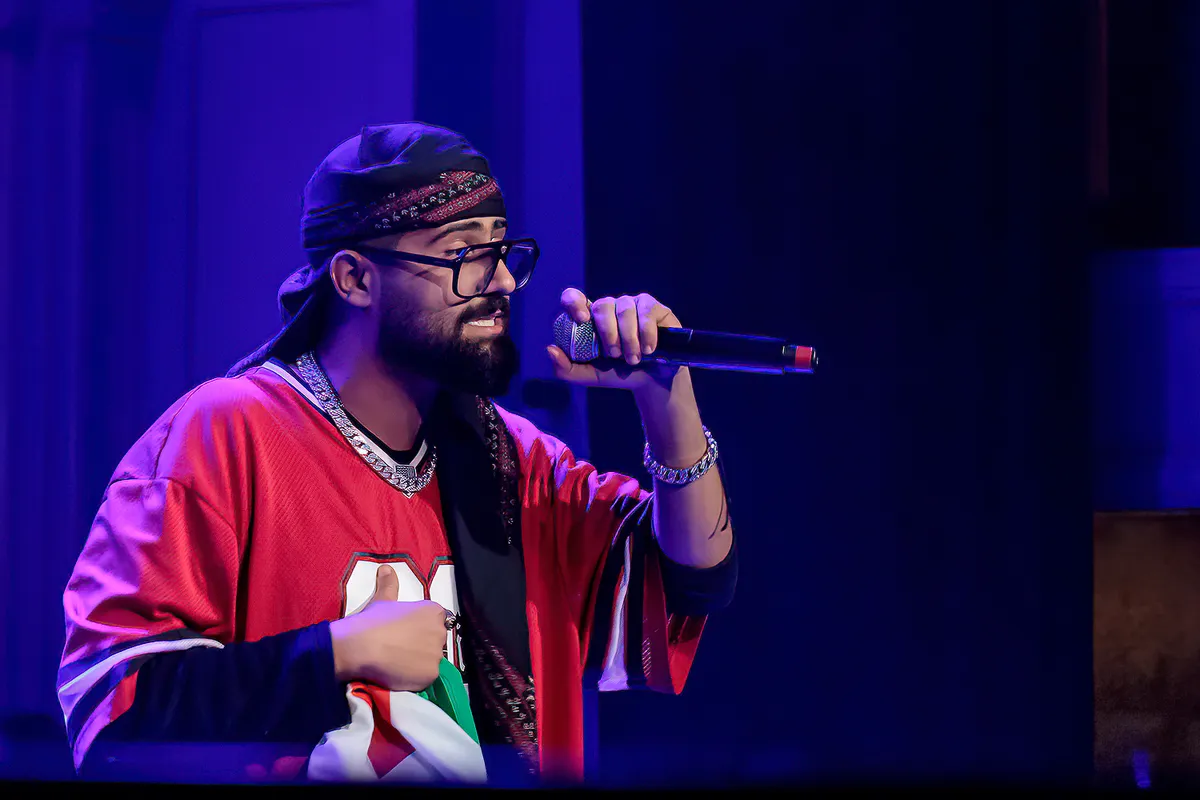 Ondertussen is in de bovenzaal het optreden van Naji XYZ (oftewel Zaid M. Naji uit Jemen), Q-Mars (uit Iran) en Isma Ip (uit Somalië) begonnen, dat volgens een sandwichformule verloopt. De muzikanten komen namelijk uit verschillende Afrikaanse Windrichtingen. Naji XYZ trapt de avond af met zijn beats waarna hij Q-Mars zich bij hem voegt gevolgd door Isma Ip. Muzikaal is het niet allemaal van de bovenste plank wat de beatmaker en zijn twee rappende compagnons doen en zéker aan de bindtekststen moet nog het e.e.a. geschaafd worden. Het tussen de nummers “DJ we wanna party” zingen, volstaat daarmee niet, maar het optreden heeft ondanks wat technische strubbelingen een lekkere flow en met een cover van K’naan’s ‘Wavin’ Flag’ ook de juiste positieve vibe.
