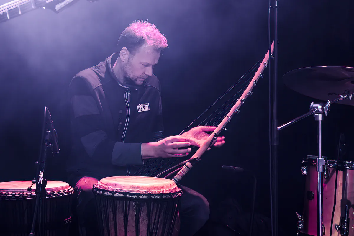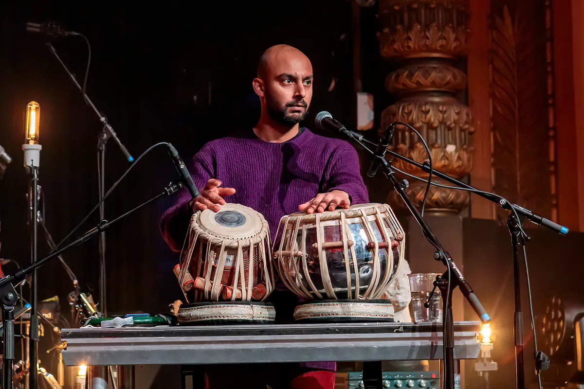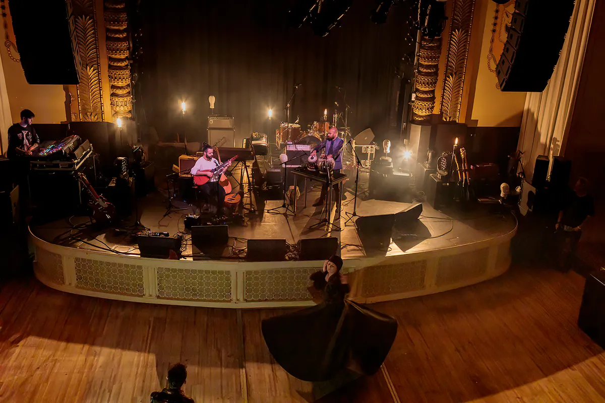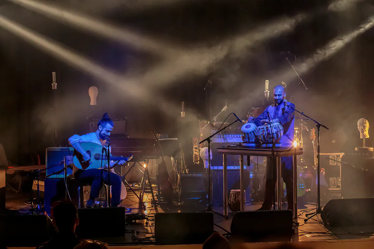 Van een andere orde is Sinan Arat’s Sufidelica die als volgende artiest in de grote zaal speelt aangekondigd als fluitist, maar in werkelijkheid een trio bestaande uit een ud-speler (een arabische luit), een tabla-speler en een Soefi-danseres. Aangezien de Soefi-danseres met haar weelderig opwaaiende jurk voor het podium danst zijn de eerste meters voor het podium in gebruik waardoor het publiek in een cirkel om haar heen staat. Terwijl de beide mannelijke bandleden hun virtuositeit op ud en kabla tentoonspreiden. Waarbij vooral de kabla opvalt als een uiterst melodieus percussie-instrument dat je kunt laten spreken, tel daar de scat-zang van de percussionist bij op en je krijgt niet alleen een visueel, maar óók muzikaal een hypnotiserend optreden.