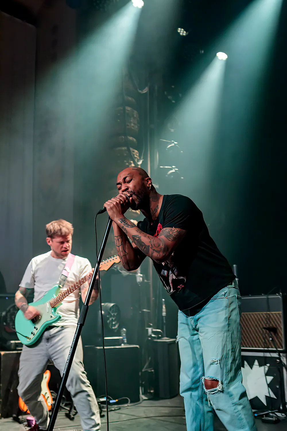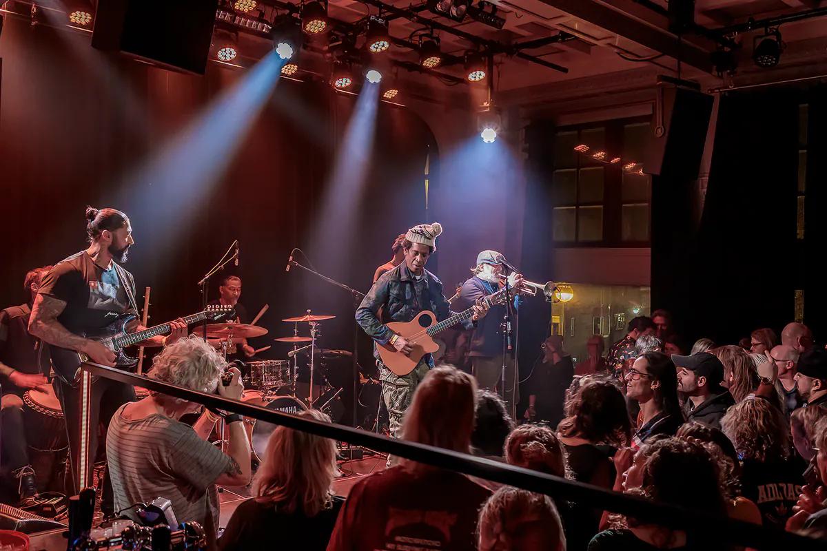 Hierna verplaatsen wij ons naar inmiddels goed volgelopen grote zaal voor het optreden van De Niemanders (waardoor we helaas het het solo muziektheater van Sally Jabour en spoken word optreden van Sait Gulsen in de kelder van Luxor Live missen). De zaal is terecht volgelopen zo blijkt, want laat het maar een bloedbroeders Wout Kemkens en de bij vlagen heerlijk theatrale Rocco Ostermann over om een intense show neer te zetten. Daarbij worden ze in de rug gesteund door een soepel musicerende band. Een klein minpuntje is wellicht dat de nadruk vooral ligt op die gevangenisplaat uit 2020, omdat ze nog midden in de opnames zitten voor die tweede Niemanders-plaat die in 2024 uit moet komen. Een kniesoor die daar op let. Een van de prijsnummers vanavond is melancholische ‘Joe’, het wel degelijk van die nog te verschijnen plaat afkomstige ‘Miss Information’ (deels gezongen in het Frans) en na ‘De Mier’ mag de immer driftige Patrick Tilon a.k.a. Rudeboy aanschuiven voor twee Urban Dance Squad-klassiekers . Namelijk ‘Alienated’ en ‘Demagogue’. De heren sluiten af met het heerlijk jakkerende ‘Skycrasher.’