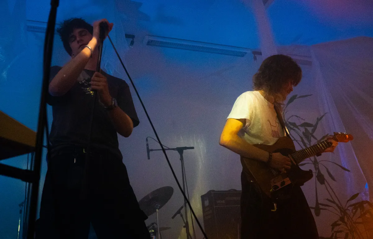 Als we de ruimte binnenstappen voor het optreden van Straydog heeft de ruimte zich gevuld met rook. Langzaam zien we bandleden Stijn en Yate verschijnen. Ze stappen even uit hun rol als organisator en storten zich volledig in hun muziek. Constant creëren ze met individuele elementen samen een unieke compositie. Zo zien we onder andere een strijkstok over een gitaar gaan. Hun werk is ambachtelijk, waarbij elk bandlid zijn eigenzinnige toevoeging heeft en bijna zijn eigen genre creëert.