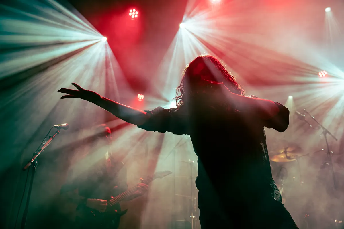 De lichtshow, met extra verticale lampen op het podium, geeft het geheel sfeer, maar qua podiumpresentatie blijft het allemaal wat ingetogen. Zeker in vergelijking met de uitbundigheid van Yoth Iria voelt het wat statisch, hoewel de zanger en gitaristen regelmatig op de extra verhoging voor op het podium gaan staan om contact te zoeken met het publiek. Echt indruk maken doet dat niet, want de zaal loopt langzaam verder leeg, een beetje sneu voor de band.