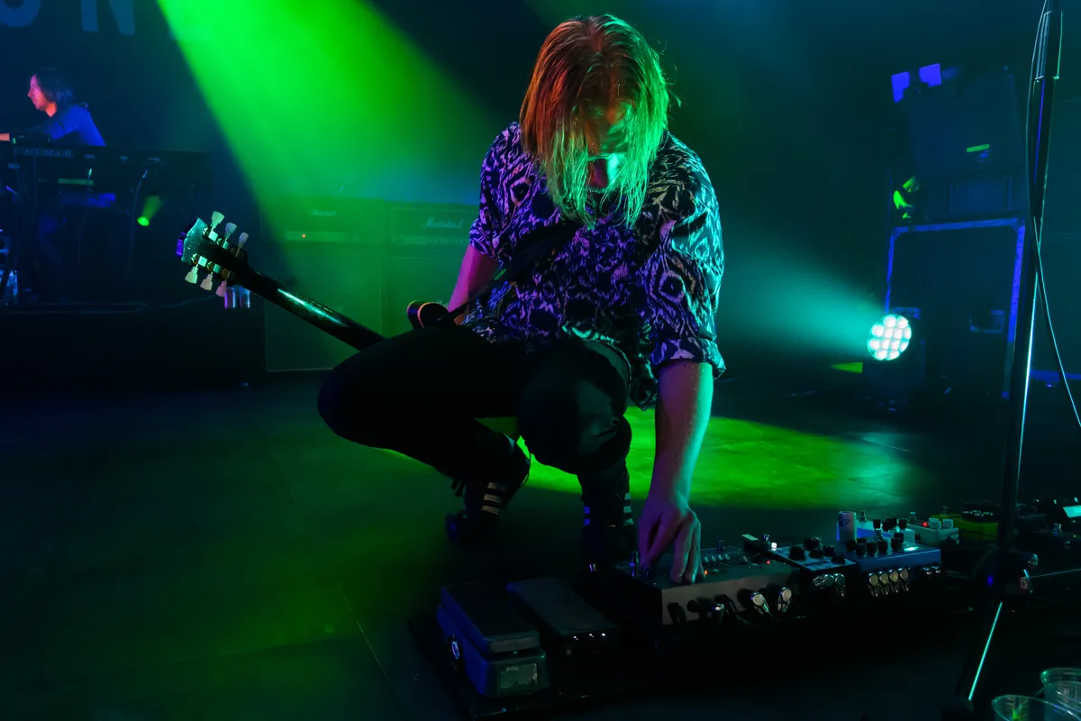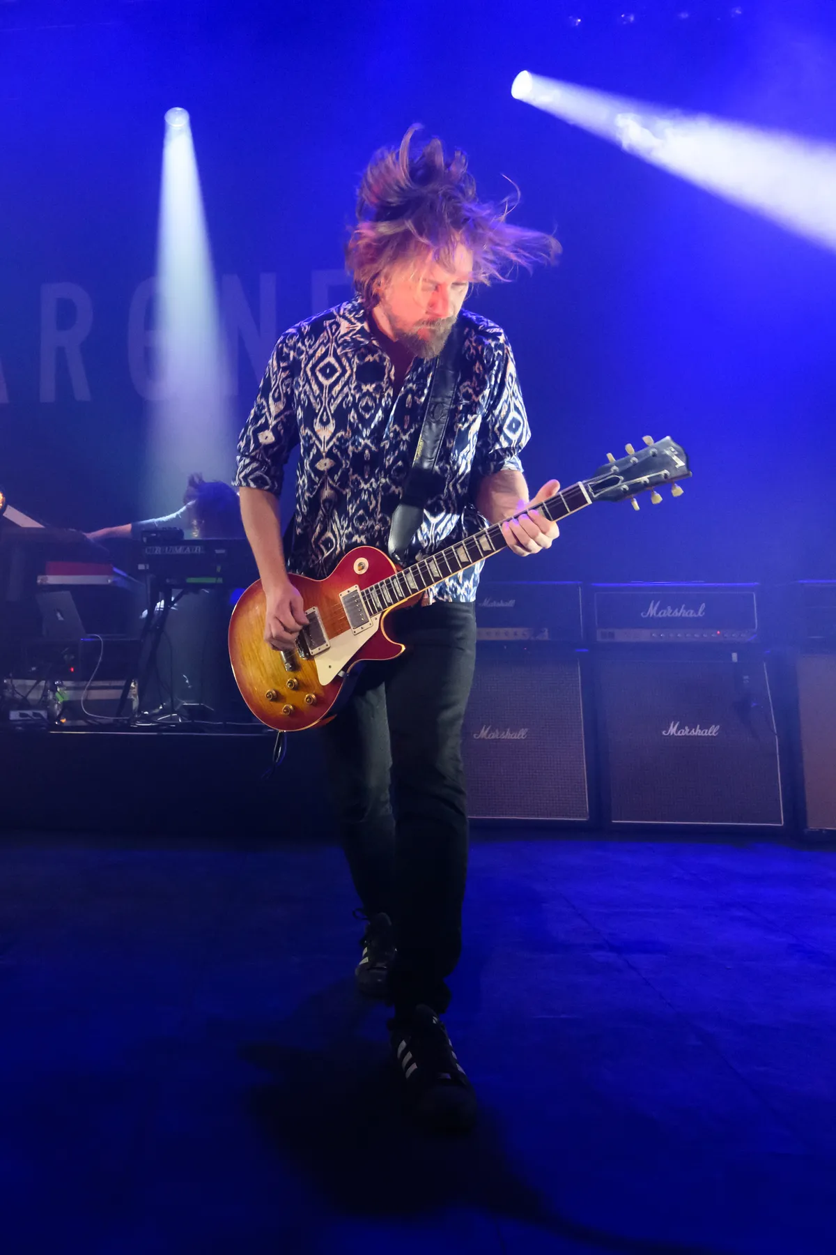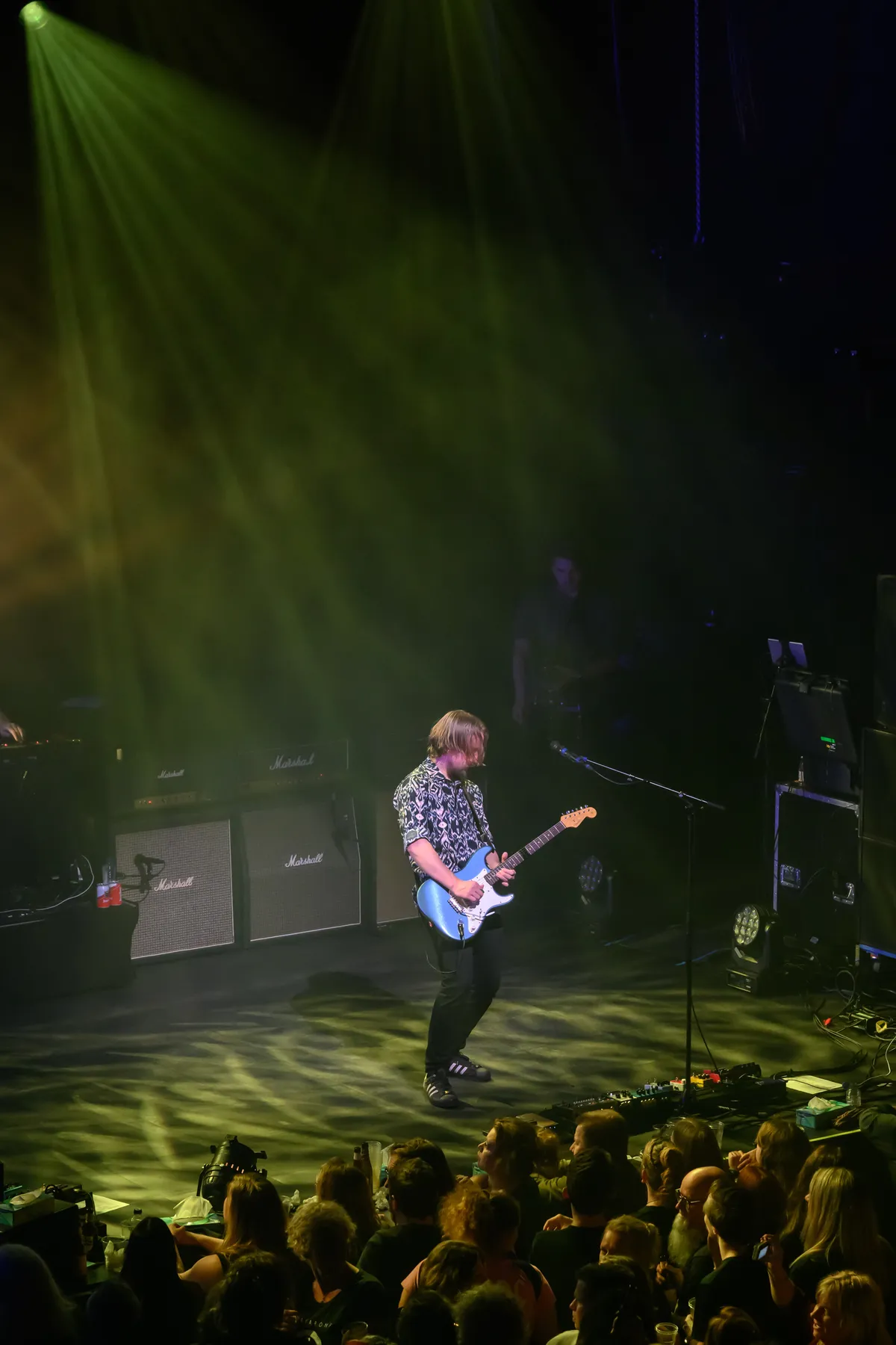 Een mooie verscheidenheid uit het oeuvre van de band zo, maar het is steeds echt kassa wanneer zanger Merijn uithaalt met die waanzinnige stem. Ingetogen start ‘Indigo Blue’ in, waarna gitarist Kees en drummer Robin abrupt stoppen met spelen. Nu opletten allemaal, Merijn, heeft zijn blazer inmiddels uit en nu in tanktop, trekt z’n strot open! Moeiteloos haalt de zanger heel wat seconden uit. Alles klapt daarna open. Voortdurend ondersteunen de (bas)gitaristen Merijn met hun knallende geluid, dat ze met een hoop gemak uit hun instrumenten stampen.
