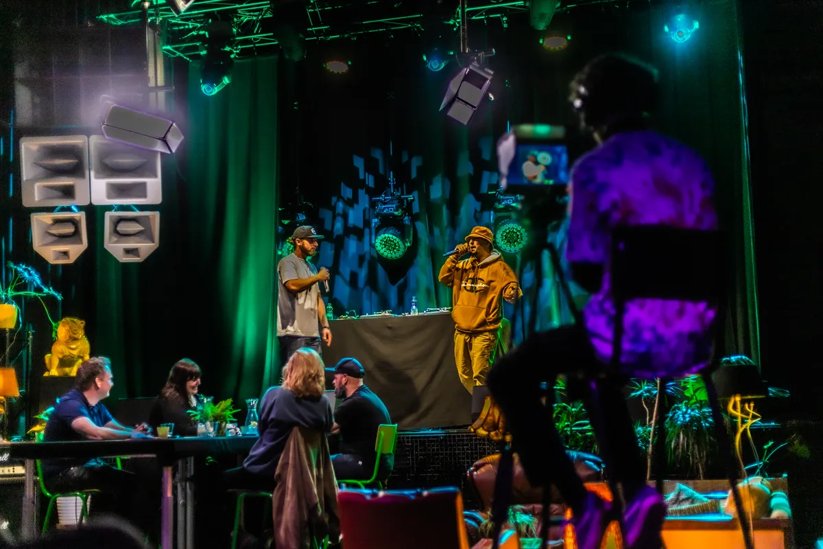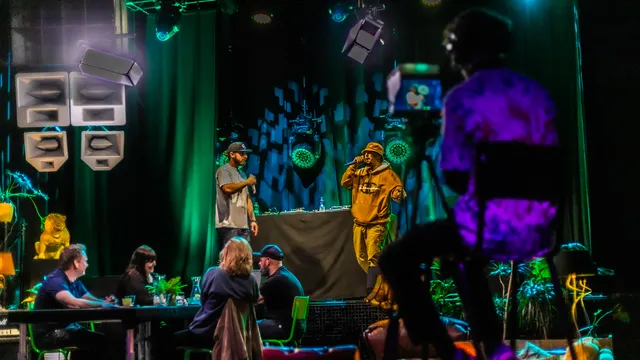 Elke week wordt er in Neushoorn een live talkshow opgenomen. Wekelijks staat er een andere Friese band centraal. De tafel wordt dan nog aangevuld met een gast. Deze tweede aflevering stond Double Trouble centraal en gingen we daarnaast in gesprek met Eva van Netten, over onder andere Explore the North en haar band BlackboxRed. De gehele show wordt live gefilmd en geregisseerd door docenten en studenten van de opleiding D’Drive. Door de huidige situatie is er een schaarste ontstaan op de stagemarkt en op deze manier kunnen studenten praktijkervaring opdoen.