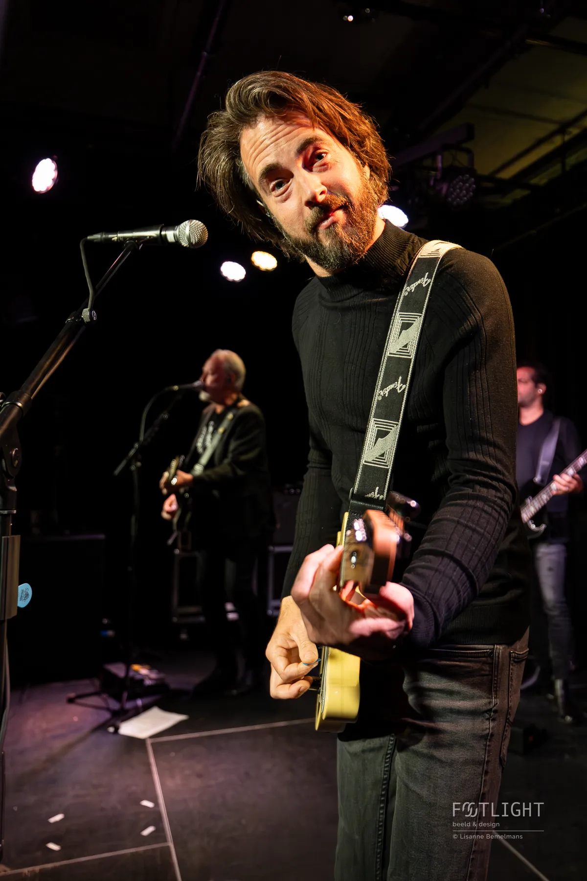 Eind deze maand staat de release gepland van hun album Totempoal, maar vandaag maakt de band zijn opwachting in Volt in Sittard, waar net iets meer dan honderd man aanwezig zijn. De zaal is dan ook gehalveerd, waardoor er meteen een intieme sfeer ontstaat. Middenachter op het podium staat een grote totempaal, die symbool staat voor de stamboom van de Americaanse dialectzanger.
