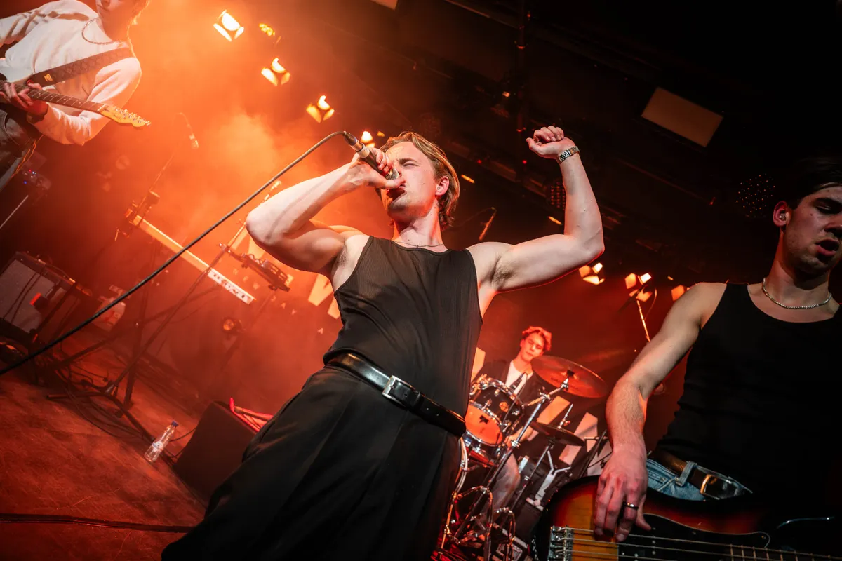 In ons voorbeschouwingsinterview vorige week gaf de band rond zanger Jelle Bijnen al aan dat deze show meer een release ’party’ dan een release ’show’ moet zijn. Aan alles is gedacht om die feeststemming erin te krijgen: we krijgen een glaasje bubbels bij de entree en er is gezorgd voor wat snacks tijdens de show. Er hangt ook een uitbundige sfeer, het staat al goed vol voordat het voorprogramma begint.