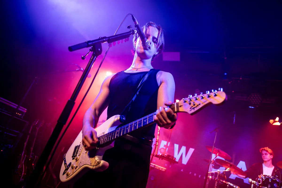 New Dawn komt onder luid gejuich op met het nummer ‘Feeling Good’ (It’s a New Dawn, it’s a new day…) en knalt er daarna gelijk in. In de zaal hangt een klassieke releaseparty sfeer: veel mensen kennen de band persoonlijk en het publiek kent elkaar ook goed. Verder draagt minstens de helft een New Dawn t-shirt en wordt om alles nét iets harder gejuicht. De nieuwe EP bestaat uit vier steengoeie poprocksongs. Niet mega experimenteel maar eenvoudige, lekkere bangers. Live komen ze goed tot hun recht door de enorme stagepresence die om deze band heen hangt. De band bestaat uit vier posterboys en dat weten ze zelf maar al te goed: om en om pakken ze de aandacht met een ruige gitaarsolo, een perfect getimede hairflip of een flinke uithaal.