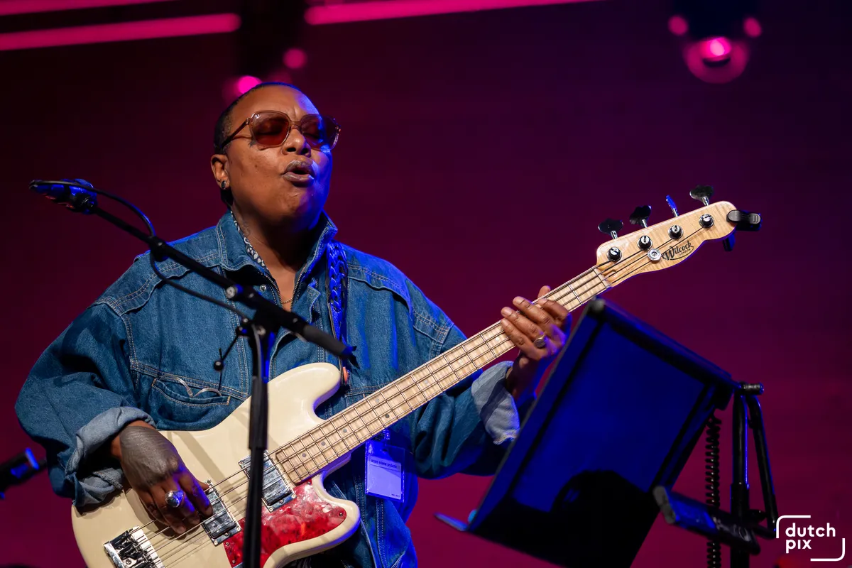Ndegeocello blijft, ondanks haar indrukwekkende statuur, een opvallend introverte podiumpersoonlijkheid. “I’m not a talker. There is a lot of talking in this world,” zegt ze, waarmee ze haar kritische, soms cynische blik op de tijdgeest subtiel benadrukt. De Amerikaanse bassist en zangeres is een muzikale omnivoor: even thuis in hiphop, soul en rock als in jazz, wat haar lange lijst samenwerkingen overtuigend bewijst.