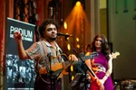 Terwijl elders in Amare het publiek zich verzamelt voor Candy Dulfer, speelt in de Spinoza Foyer een veel intiemere set. Zangeres Egle Petrosiute en gitarist Djâmen staan hier met hun project 'Songs I Call Home' samen met piano, een zes-snarige bas en drums. Het optreden maakt deel uit van Podium De Nieuwe Kamer een Haags podium voor jazz, wereld- en improvisatiemuziek dat al jaren een belangrijke broedplaats vormt voor lokale muzikanten, al is onlangs helaas de subsidie voor het initiatief weggevallen.