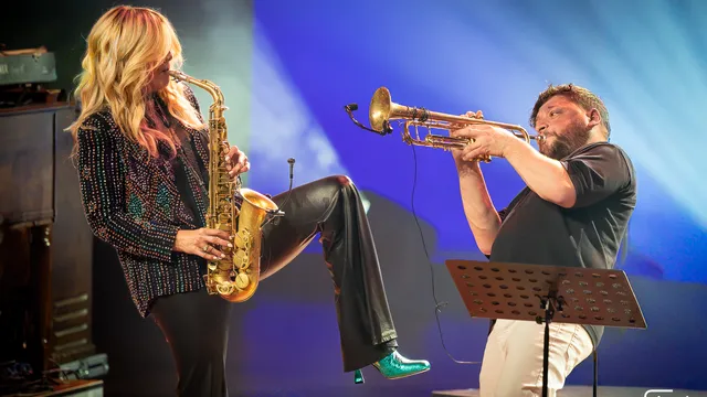 In de grote zaal van Amare zit het publiek bij aanvang nog keurig op de stoelen. Candy Dulfer denkt daar anders over. “Als je wil dansen: gewoon doen,” zegt ze vanaf het podium. Het duurt nog even voordat iedereen dat advies opvolgt, maar duidelijk is: stilzitten is niet de bedoeling.