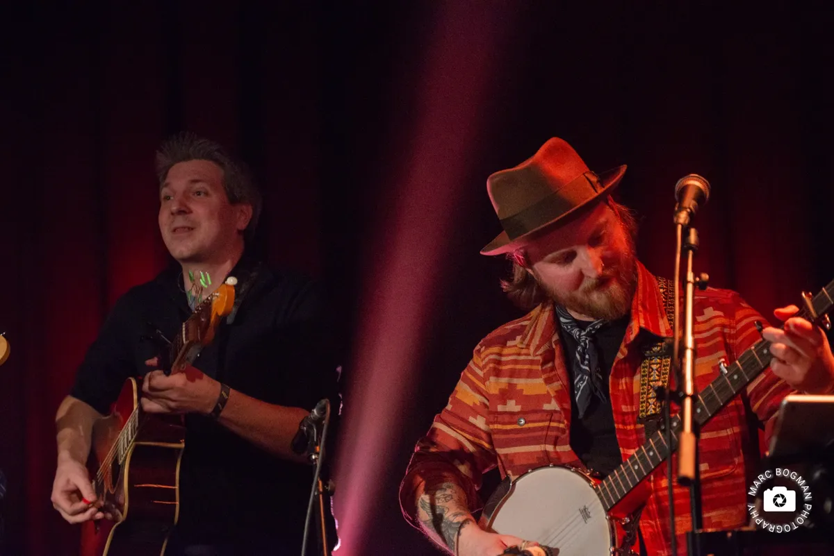 Wat dit concert extra bijzonder maakt, is dat het niet alleen onderdeel is van hun zelf uitgeroepen kortste tour ter wereld, maar ook laat zien hoe Barn & Belle zich in een nieuw jasje kunnen presenteren. Dit keer staan ze namelijk niet alleen op het podium, maar met een volledige band. Die uitbreiding voelt als een logische volgende stap. Frontman Jesse bevestigt dat dit niet de laatste keer zal zijn dat we Barn & Belle met band zien. En dat is fijn, want met de band krijgen de nummers meer diepte en kracht. Goof wisselt moeiteloos tussen banjo en mandoline, terwijl Jan op bas zorgt voor een stevige ondergrond. De muziek krijgt meer ruimte om te ademen en klinkt groter, voller en soms zelfs verrassend rauw, zonder de speelsheid kwijt te raken. Het samenspel voelt los, maar strak genoeg om het publiek constant in beweging te houden.