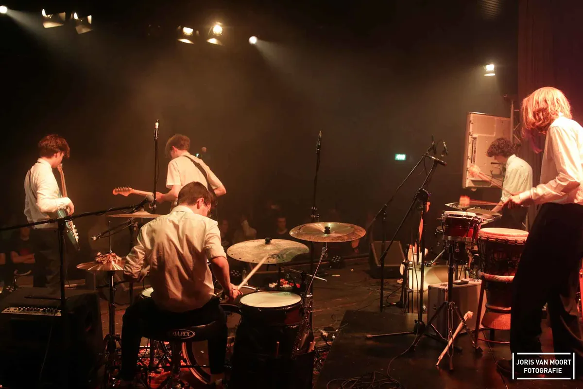 Zaterdagmiddag, iets na half vier in de middag. MEN opent het gloednieuwe indoor-festival Verse Visrock in de Vroone te Kapelle. De naam van het festival is een knipoog naar de Grote Geelstaart (mede-organisator van het festival). In het cultuurhuis zijn diverrse visnetten en andere attributen aangebracht, waarbij bezoekers zich wanen bij een viskotter of een visafslag. Wie even geen bands of acts wilt luisteren, kan altijd nog terecht bij kunst-artist Arn Dijon of vinylverkoop. Ook daar is dus aan gedacht.
