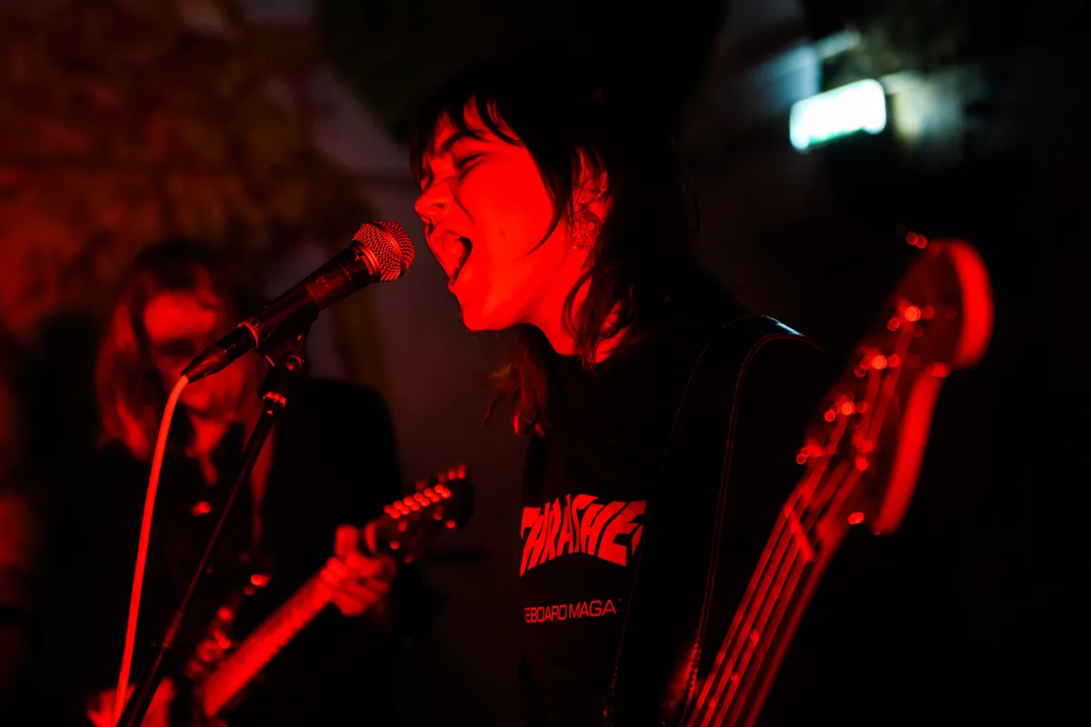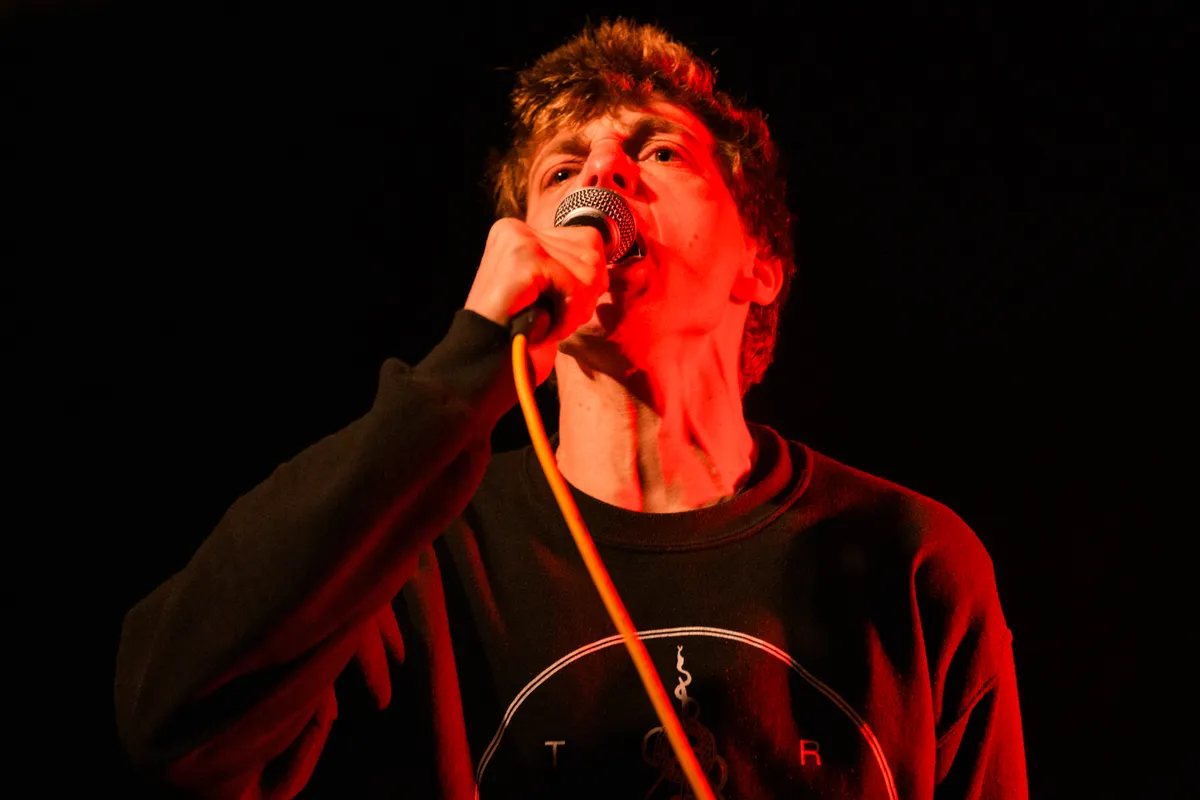 De avond wordt afgetrapt door de Eindhovense Ellenor Vora, ze staat vanavond zonder band in haar eentje met elektrische gitaar op het podium. Haar nummers gaan over de donkere kanten van leven en die teksten verpakt ze in melancholische dreampopsongs. Hoewel niet elke noot raak is, verraadt Vora’s fragiele stem dat de nummers die ze zingt echt uit eigen hart en hoofd komen en dat maakt haar onzekere uitstraling enigszins begrijpelijk. Ga er maar aan staan: zingen over de kwetsbaarheid die eenieder wel eens ervaart maar niet altijd deelt. Wanneer je zonder band op een podium staat moet je er al gauw voor waken dat het niet te saai wordt en een set van een half uur is dan ook wel wat aan de lange kant.