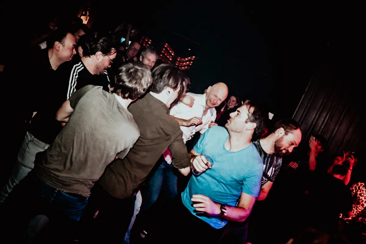 Die puurheid komt ook terug in de band: twee van de bandleden, Giel (Net DJ, nu gitarist) en Brnd (bass), zaten al met Kian in hun eerste band toen ze zestien waren. Gelijk doorpakkend op dat sentiment speelt Dr. Uggs het allereerste nummer van die eerste band, het enige nummer in het Engels en, zoals het heterojongetjes van zestien betaamt, gaat het over meisjes. Hoog sentiment. Maar de zaal valt een beetje stiller. Dat was allemaal onderdeel van het grote plan van Dr. Uggs en dus organiseert hij een moshpit.