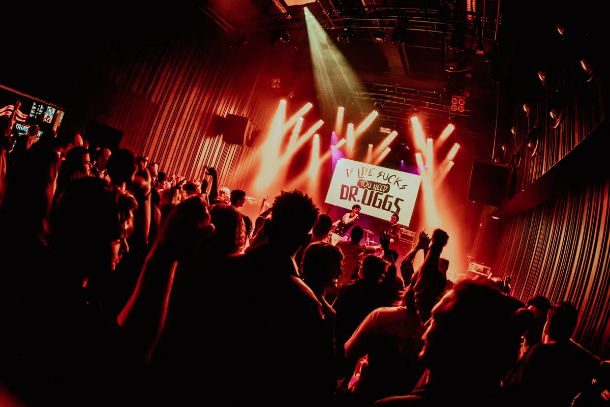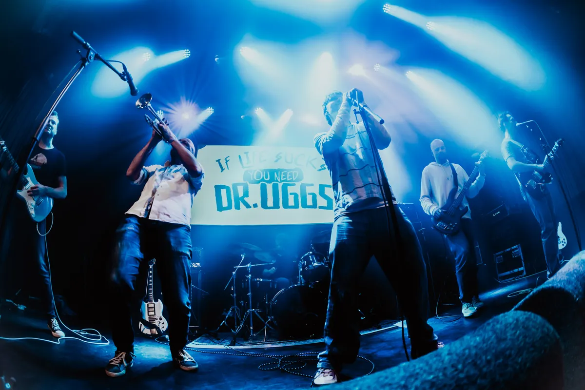 Dr. Uggs is niet iets dat je per nummer moet waarderen. Het is een heel optreden. Als je als puritein binnenkomt, zul je bij de eerste nummers vast wel wat aan te merken hebben. Met je goede smaak en kennis sta je dan met je zwarte coltrui achter in de zaal. Je biedt weerstand met kennis van muziektheorie en alles wat op Spotify staat. Maar Dr. Uggs wint het van je. En voor het laatste nummer sta ook jij met je biertje zwaaiend mee te zingen en springen. Dr. Uggs is een constante energie die met glinsterende ogen je uitnodigt en mee blijft nemen.