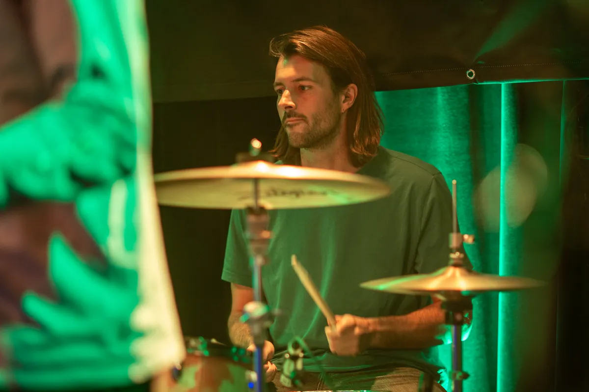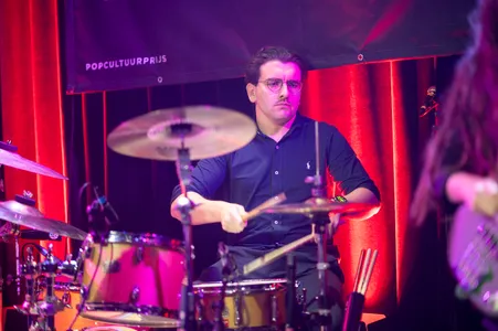 Gitarist Rense en Daan, met gelukzalige glimlach, bewegen ontspannen op het podium. Zo spelen ze ook. Rense is showy vandaag, hij durft echt de spotlight op te eisen met theatrale gebaren en nadrukkelijke solo's (kijk hem gaan bij het slotnummer 'Happy Thoughts'!). Dat belooft veel voor december, wanneer ze in de Melkweg staan.