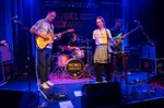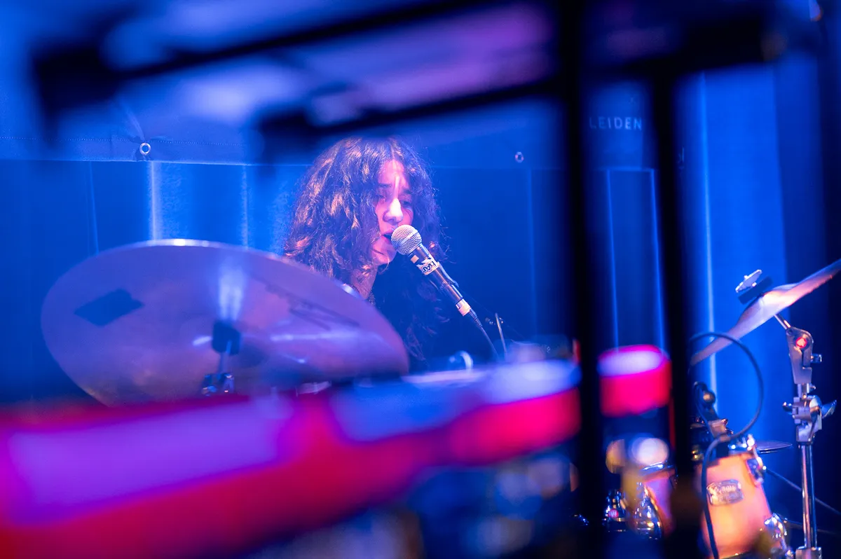 Midvoor staat… hé, is dat de zangeres? Maar waarom zingt ze dan tweede stem? Zingt ze soms mee met een opname? Nee, de leadzang komt van drummer Fay Arapatsani. Een drummende zangeres: het Phil Collinscliché ligt voor de hand, al zou Meg White ook kunnen – dat is al passender. De gitarist en de bassist hebben een goede klik en werpen elkaar bemoedigende blikken toe.