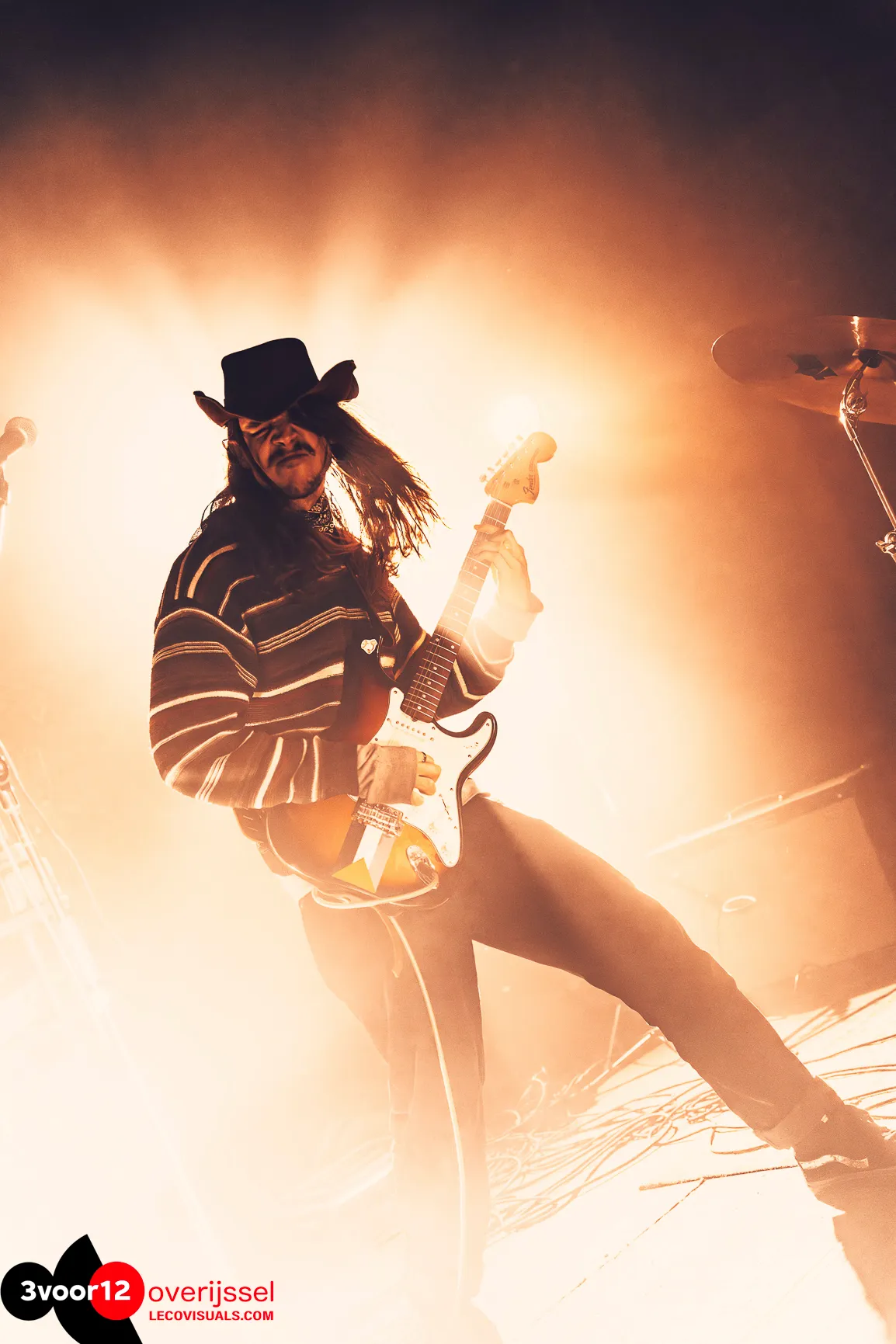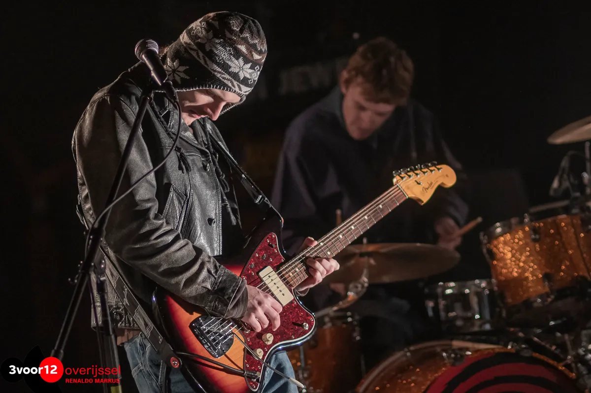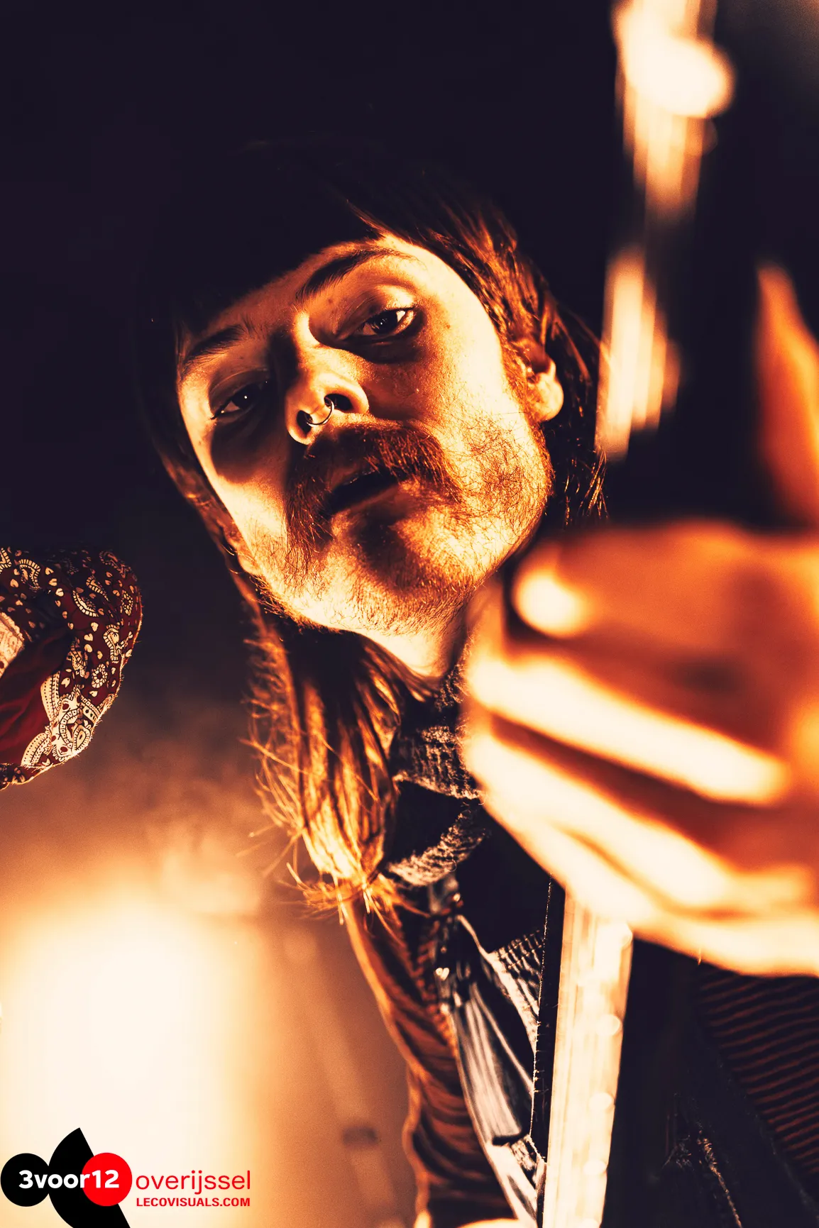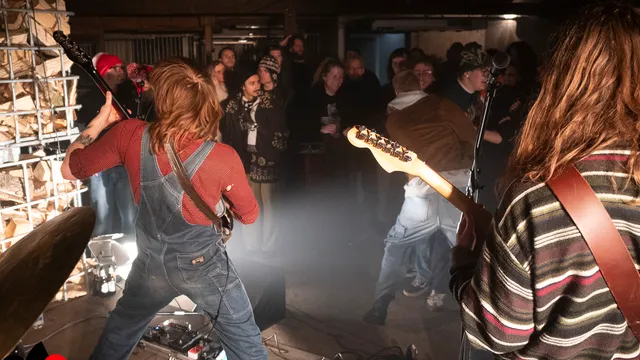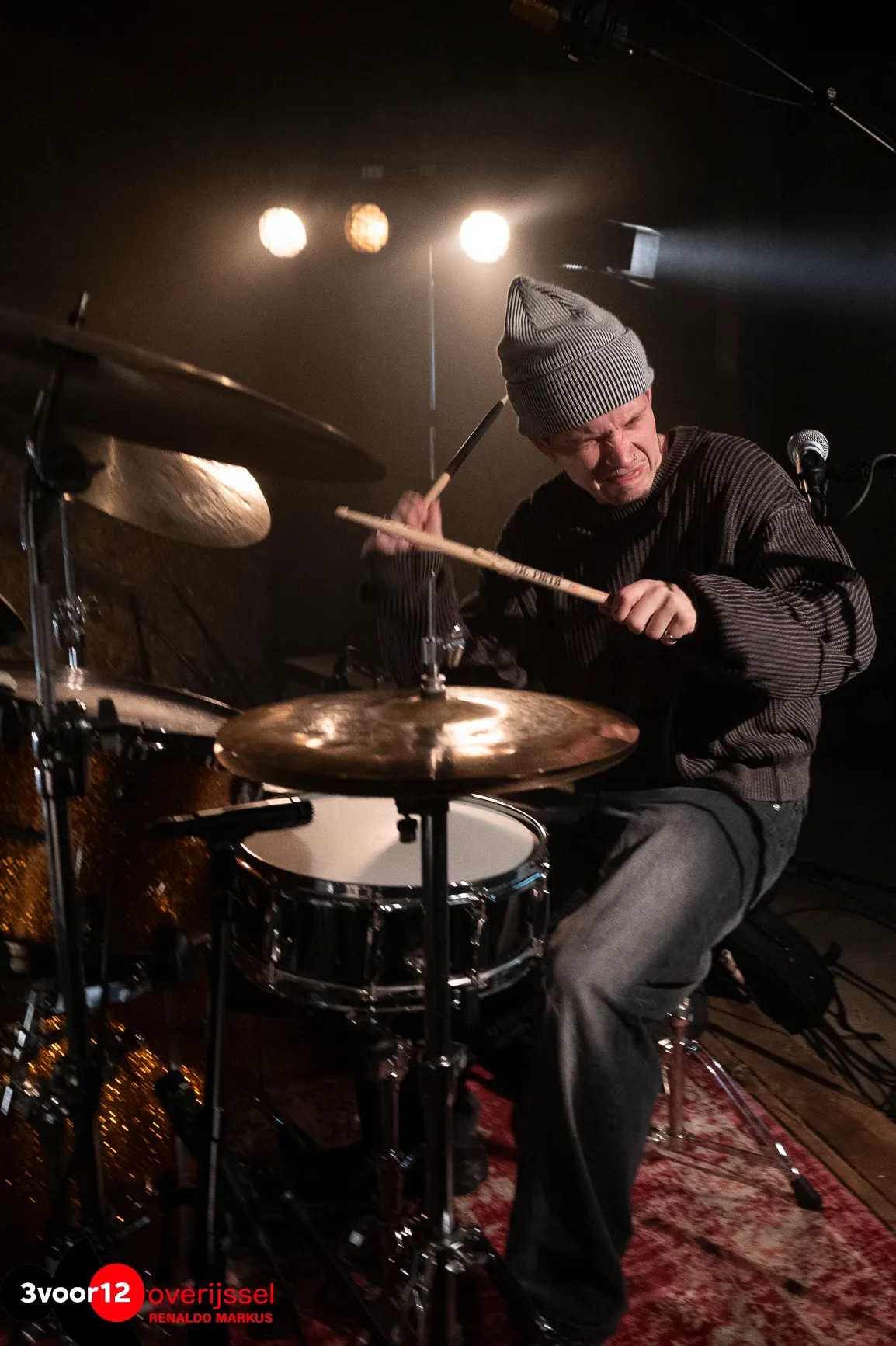 Als laatste is de beurt aan de sleutelfiguren van de avond. Nomads Radio presenteert hun nieuwe EP met overduidelijk speelplezier. Al snel gaan de warme jassen en de handschoenen uit, zowel op het podium als in het publiek. Naast bijna alles van Western Ecstasy komt er ook materiaal langs van de in 2023 uitgebrachte langspeler In a Crack, plus een nog niet eerder vertoonde track die verser dan een dampende oliebol klinkt. Omdat de mondharmonica nog thuis ligt, imiteert drummer Nanne haarfijn a cappella het blaasinstrument voor de intro van Burned Out. Piepjonge teksten worden vooraan meegezongen alsof ze al jaren in de rotatie zitten en er wordt gedanst met een uithoudingsvermogen waar de eigenlijke bewoners van deze stal een puntje aan kunnen zuigen. Na afloop wordt het uitbundige publiek lading voor lading weer netjes naar het station gebracht en keert de rust terug nabij de Duitse grens. Of de paarden jaloers zullen zijn op het feest dat in hun stekkie is gevierd, zullen we nooit weten.