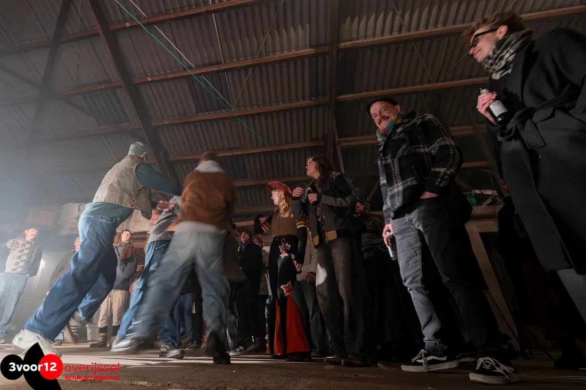 Het feestje vond plaats in een lege paardenstal in het donkere buitengebied van Enschede. Voor wie dat wilde werd er met een wit busje en een Ford Focus gependeld tussen station en boerderij. Binnen ruikt het naar hooi en Mexicaans eten. De luidsprekers staan enigszins stabiel op twee grote stapels brandhout, het podium is gemaakt van pallets. Er is een rookmachine, maar de wolkjes warme adem in de ijskoude stal brengen op zichzelf al een behaaglijk effect teweeg. Een koelkast voor het bier is vannacht niet nodig. Hier staat een harde kern van enkele tientallen vrienden en fans van het eerste uur die de pelgrimstocht naar de boerderij hebben afgelegd om drie Overijsselse topacts in een bijzondere setting toe te juichen.