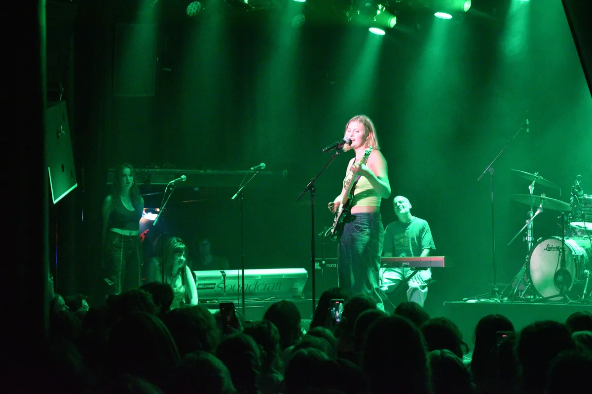 Noor geeft aan dat we bijna bij het einde van de show zijn, terwijl de band het intro van Jong en Oud op repeat speelt. Het is een van de meest swingende nummers van de avond en het plezier spat er vanaf bij het publiek, bij de band, en natuurlijk bij Noor zelf. Na het nummer neemt de band onder luid applaus afscheid. Maar Noor neemt nog geen afscheid tot ze “een afscheidsliedje” heeft gespeeld. Ze speelt Ik Zwaai Het Uit solo in de spotlights met een gitaar in de hand, en de setting wordt compleet gemaakt door de bellenblaas die iemand op de eerste rij heeft meegenomen. Met nog meer meezingers dan eerder op de avond zingt ze over hoe ze afscheid nam van de stad waar ze nu speelt, een prachtige manier van thuiskomen. Onder het luidste applaus van de avond verlaat ook Noor het podium, en wordt nogmaals duidelijk hoe goed de band tussen Noor en haar publiek is. Met pas één EP en een paar singles op zak heeft ze al een sterke fanbase opgebouwd, en het kan niet lang meer duren tot haar echte doorbraak.