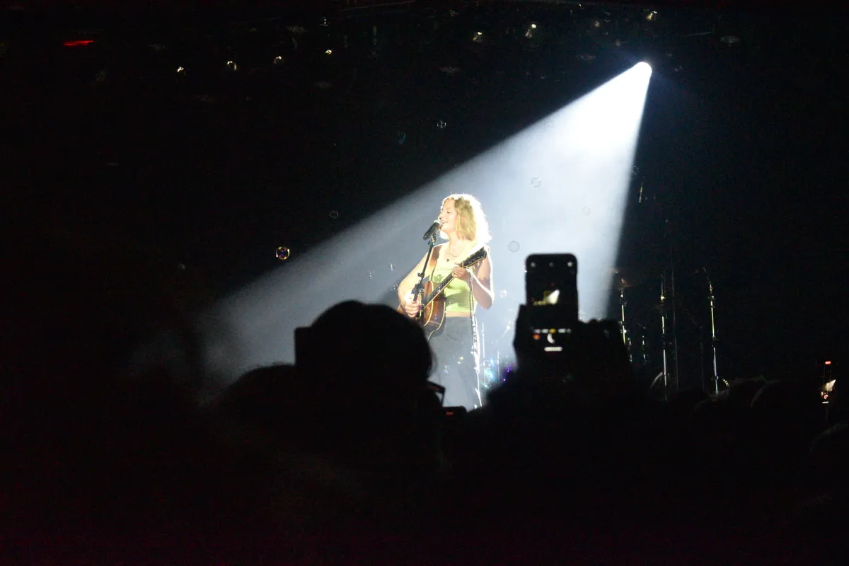 Het Nederlandstalige deel van de set begint met De Wereld Sterft (ik mis m’n stad), en direct zingt een deel van de zaal de teksten mee. “It’s that time of the show”, geeft Noor vervolgens aan als ze op de rand van het podium gaat zitten en aan Halfverdwaald begint. Ze wordt voor deze Nederlandstalige piano ballad begeleid door één van haar achtergrondzangeressen die plaats heeft genomen achter de toetsen, en door het deel van het publiek dat meezingt. Het is mooi om te zien hoe Noor gebruik maakt van het meezingende publiek. In plaats van dat ze het probeert te overstemmen, heeft ze chemie met het publiek en zingt ze echt samen met de zaal. Even later wordt Noor vergezeld door néomí, die het voorprogramma verzorgde, om samen Goede Dagen te spelen. Een prachtig rustig moment tegen het einde van het optreden.