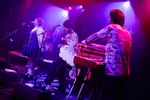 Postpunk gedijt goed in politieke bange dagen, dus mag het geen wonder heten dat we in de afgelopen paar jaren ook in Nederland weer een opleving zien met wisselende resultaten. De Amsterdammers van Cardigan Inn mogen we inschalen in de hogere regionen, want songs, presentatie en beheersing van instrumentarium: alles klopt bij dit vijftal. De vergelijking met Talking Heads wordt vaak gemaakt, en alhoewel de beknepen stem én voorkomen van zanger/gitarist/toetsenist Joe Pilmijer zeker doet denken aan David Byrne, zit het muzikaal meer in het verlengde van dansbare postpunk zoals Gang of Four en Wire eind jaren ’70 maakte. Het tempo is moordend hoog, maar drummer Igor Jongenelis perst alsnog zestiendes uit zijn hi-hat en spreidt samen met bassiste Miriam Rumora (die veel te zacht staat) het bedje waarover gitaristen/toetsenisten Sidney Francis en Pablo Nollet hun stekelige riffs sprenkelen. De coolheid waarmee dit alles wordt gebracht werkt uitstekend in een steeds meer vullende Hall of Fame en het is te hopen dat iedereen nog energie overhoudt na Cardigan Inn en de dj-sets van TAXITAXI tussen de bands door. (BvD)