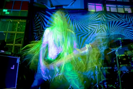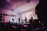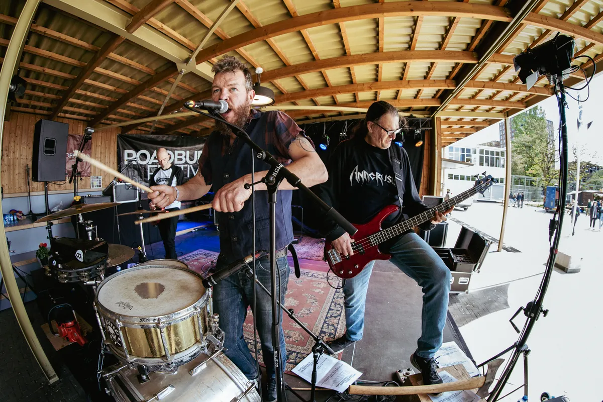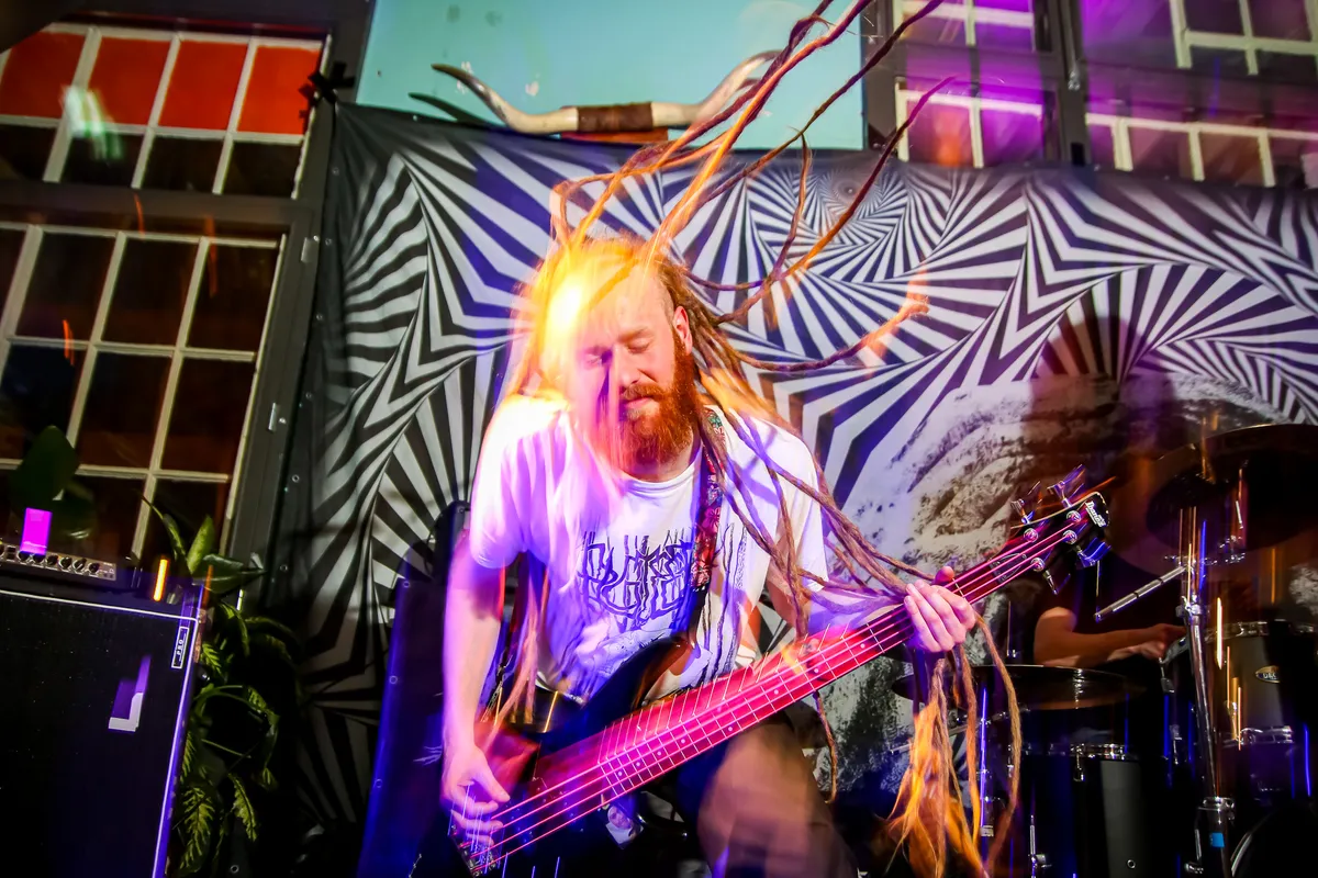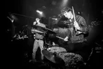 In de Loc Brewery staat vrijdagavond een band die we zojuist al even benoemde, Gomer Pyle. Een Brabantse stonerrockband die al sinds 1994 bestaat, in 1999 met hun debuutplaat Eurohappy lovende kritieken ontving en in 2009 en 2016 al eens op Roadburn mochten spelen. Na al die tijd blijkt de band nog steeds populair; de Loc Brewery staat goed vol. Hier en daar horen we wat loodzware grunge invloeden, maar de nummers van Gomer Pyle zijn bovenal melodieus en psychedelisch met innovatieve, verrassende soundscapes. De band speelt krachtig, maar houd het ook subtiel wanneer de muziek daar om vraagt. De projecties op de achtergrond, waarvoor de vaste VJ is meegereisd, sluiten naadloos aan op de psychedelische sfeer: we zien onder andere filmbeelden van verlaten straten en kleurrijke tekeningen uit anatomieboeken. Opvallend is de nieuwe drummer, of nou opvallend, Gomer Pyle heeft in 30 jaar tijd al drie drummers versleten. Nu zit daar Damian Kunath; veruit de jongste van het stel, maar dat doet helemaal niets af van de hoogstaande kwaliteit van de band. Sterker nog, Kunath drumt vol overgave en retestrak. Een aanwinst om zuinig op te zijn dus. (RZ)