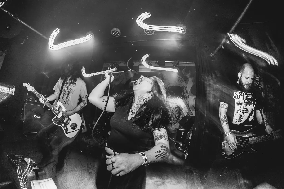 Door naar de vrijdagavond. Het weekend begint goed in de Little Devil met de Eindhovense band Alabaster. Hun geluid is te omschrijven als een mix van sludge, hardcorepunk, doom en stoner, of zoals ze zelf zouden zeggen ‘kutherrie’. Dit jonge trio dat genrehokjes sloopt, heeft een frisse en energieke uitstraling. De vocalen zijn lekker rauw en de instrumentatie ruig: zware gitaarriffs die je dwingen te headbangen en er wordt de hele set door goed en vakkundig van tempo gewisseld waardoor het nooit als te veel van hetzelfde klinkt. Vocalist en bassist Toby, backing vocalist/gitarist Jasper en drumster Sophie vormen samen een heus powertrio dat met een krachtig geluid als een bulldozer alles keihard aan de kant beukt. De band speelde al eens eerder in Little Devil, en ook nog eens in het voorprogramma van Gomer Pyle, die later vanavond ook op OFFROAD speelt. Hoewel de band nog vrij jong is - de heren en dame vonden elkaar in de lockdown - is daar op het podium niets van te zien of merken. Een uur lang wordt er onafgebroken gespeeld zonder dat de bandleden elkaar veel aankijken of met elkaar communiceren. Toby en Sophie spelen naast Alabaster ook nog in andere bands, maar hopelijk zien we deze samenstelling vaker terug op het podium. (MvdH)