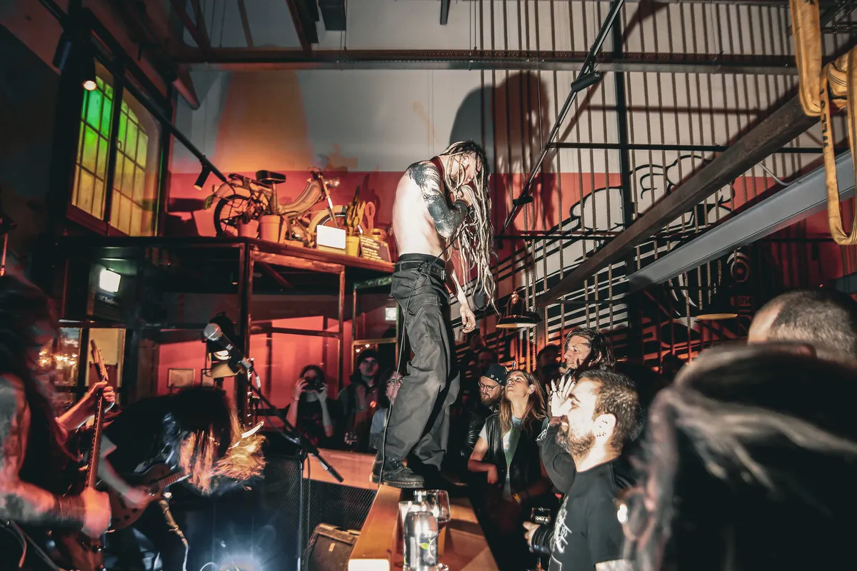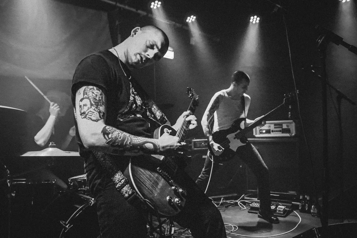 Op de zaterdag van OFFROAD treden er drie bands op in Cul de Sac, aan het Limburgse Yantras de eer om de goedgevulde Cul als eerste te betreden. Oorspronkelijk komen ze uit de Nederlandse hoofdstad van de heksenjacht, Roermond. De band brengt invloeden van allerlei zware genres samen, maar voornamelijk post-doom en sludge. De band heeft een week geleden hun nieuwe - twee-nummers-tellende - EP I Am You uitgebracht, waarvan beide nummers worden gespeeld. Vanaf de allereerste noot wordt er een meeslepende opbouw neergezet en neemt Yantras je mee op een beklemmende reis. Zowel bij de rustige segmenten als in de hardere stukken is de sfeer donker en intens. Zangeres Natalya Thelen heeft een warm emotioneel stemgeluid in de cleane stukken, maar zorgt ook voor de intense rauwe screams die zelfs zonder mic achter in de zaal te horen zijn. Als je haar hoort praten, zou je niet verwachten dat er zo’n geluid uit komt. De wanhoop en duistere, apocalyptische thema’s zijn vooral in haar zangpartijen te horen bij de lange uithalen. De herhalende gitaar- en baspartijen dragen bij aan de dreigende en mysterieuze sfeer die er hangt. Alle leden gaan op hun eigen manier volledig op in de muziek. Wanneer de drummer steeds langzamer tempo begint te spelen heeft dit juist een extra inslag bij de gitaren die je door je hele lichaam voelt. ‘I Am You’ heeft ondanks de zware thema’s een hoopvol einde. (MvdH)