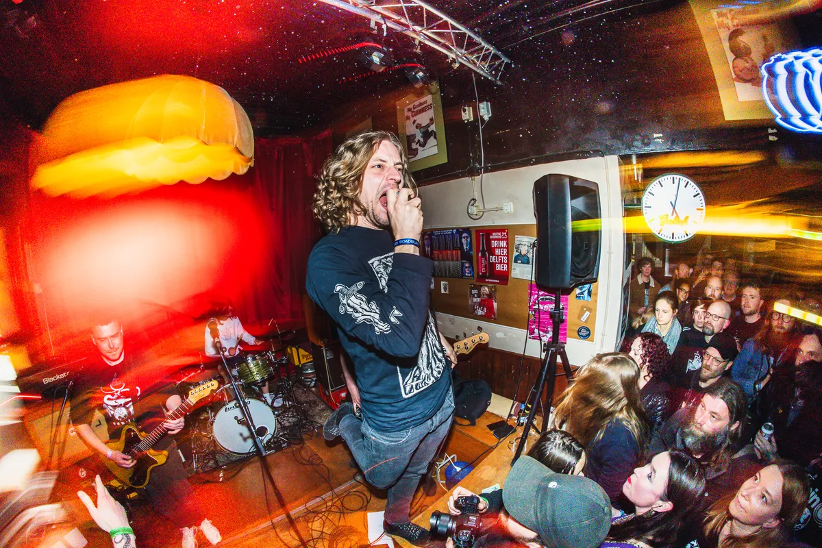 Na Yantras haasten we ons richting Kafee ‘t Buitenbeentje, maar al snel zien we dat we te laat zijn en niet meer naar binnen kunnen. De Tilburgse stonerrockband Yama speelt hier een reünie-optreden ter ere van het 10-jarig jubileum van debuutalbum ‘Ananta’, waar we in 2014 al een albumrecensie over schreven. Vanuit de gang zien we zanger Alex Schenkels af en toe boven het publiek uitkomen, maar alleen het horen van de slepende grooves, zware hypnotiserende riffs en krachtige vocalen zijn voldoende om zelfs op de gang op te gaan in de muziek. Het is alleen jammer hoeveel “PERSONEEL!!” ‘t Buitenbeentje ineens lijkt te hebben. (RZ)