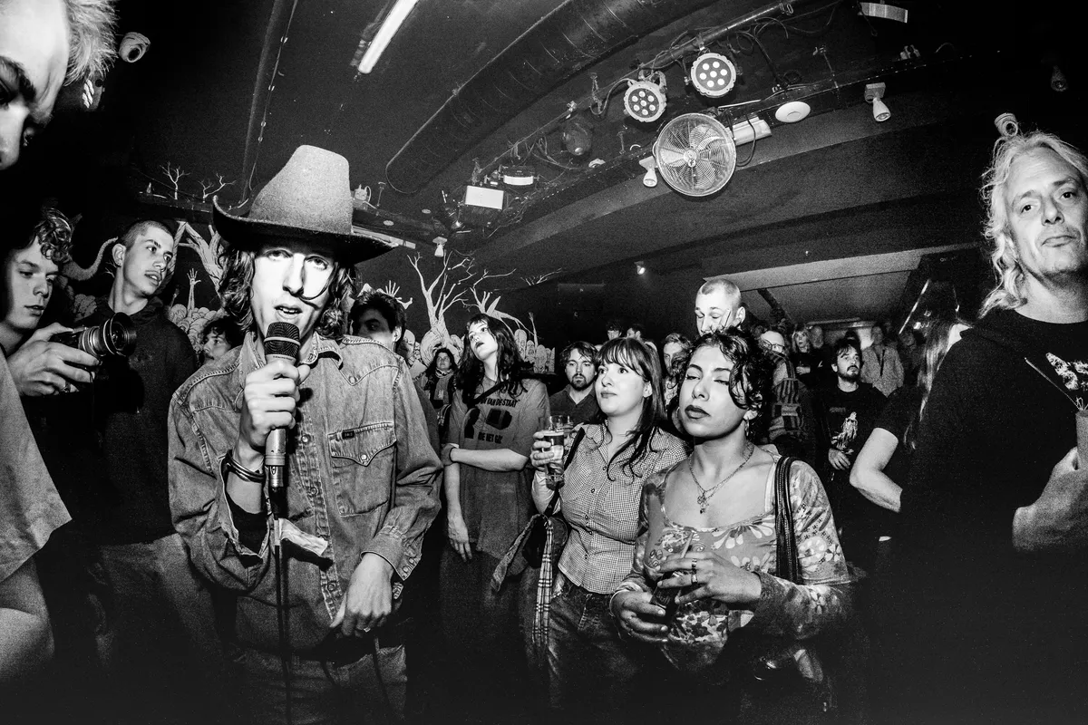 Na al die harde en donkere muziek, is het tijd voor wat lichtvoetigers: Fellatio. Het ‘echte’ Roadburnpubliek is inmiddels weer hun dosis heavymuziek ergens anders aan het halen, maar desalniettemin is het nog steeds lekker druk in de Cul. De Rotterdamse Tilburgers van Fellatio hebben zichzelf uitgeroepen tot avantgardistisch discopunk-post-penis-krautrocktrio, volg jij het nog? De hypnotiserende hooks doen zwaar denken aan de 80’s culthit ‘Der Mussolini’ van de Duitse band DAF. Tijdens het optreden krijg je het gevoel alsof je in een oude kelder van een industrieel kraakpand staat te dansen. En dan te bedenken dat de band gewapend is met enkel een drumstel en bas, maar die combi zorgt er toch voor dat je met ongeremde energie in elke hoek van de kuil staat te springen. De frontman - een extravagant figuur die met zijn cowboyhoed eruitziet als een Texas ranger - spit zijn poëtische punkteksten zonder enige moeite terwijl hij het publiek inloopt en zijn koebel bespeelt. Het drumstel, inclusief bongo’s, is voorzien van een panterprintje. Tegen het einde covert de band ‘Doris Day’ van Doe Maar waarop flink wordt meegezongen. Wel een beetje jammer dat deze tekst van een telefoonschermpje gespiekt moet worden. Maar hoe dan ook weet Fellatio wel hoe je een feestje moet bouwen. (MvdH)