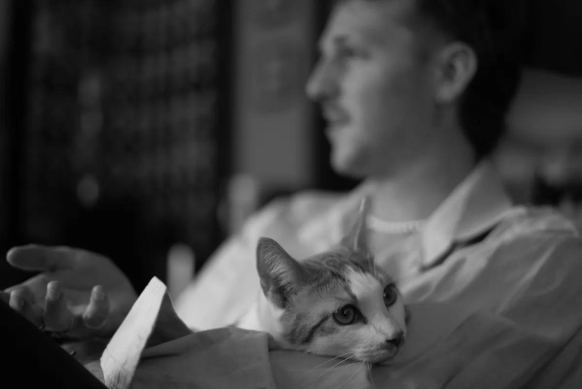 Als mijn katten er zijn die even knuffelen en vragen of Bella (red. vriendin van), als zij al wakker is, koffie wil.