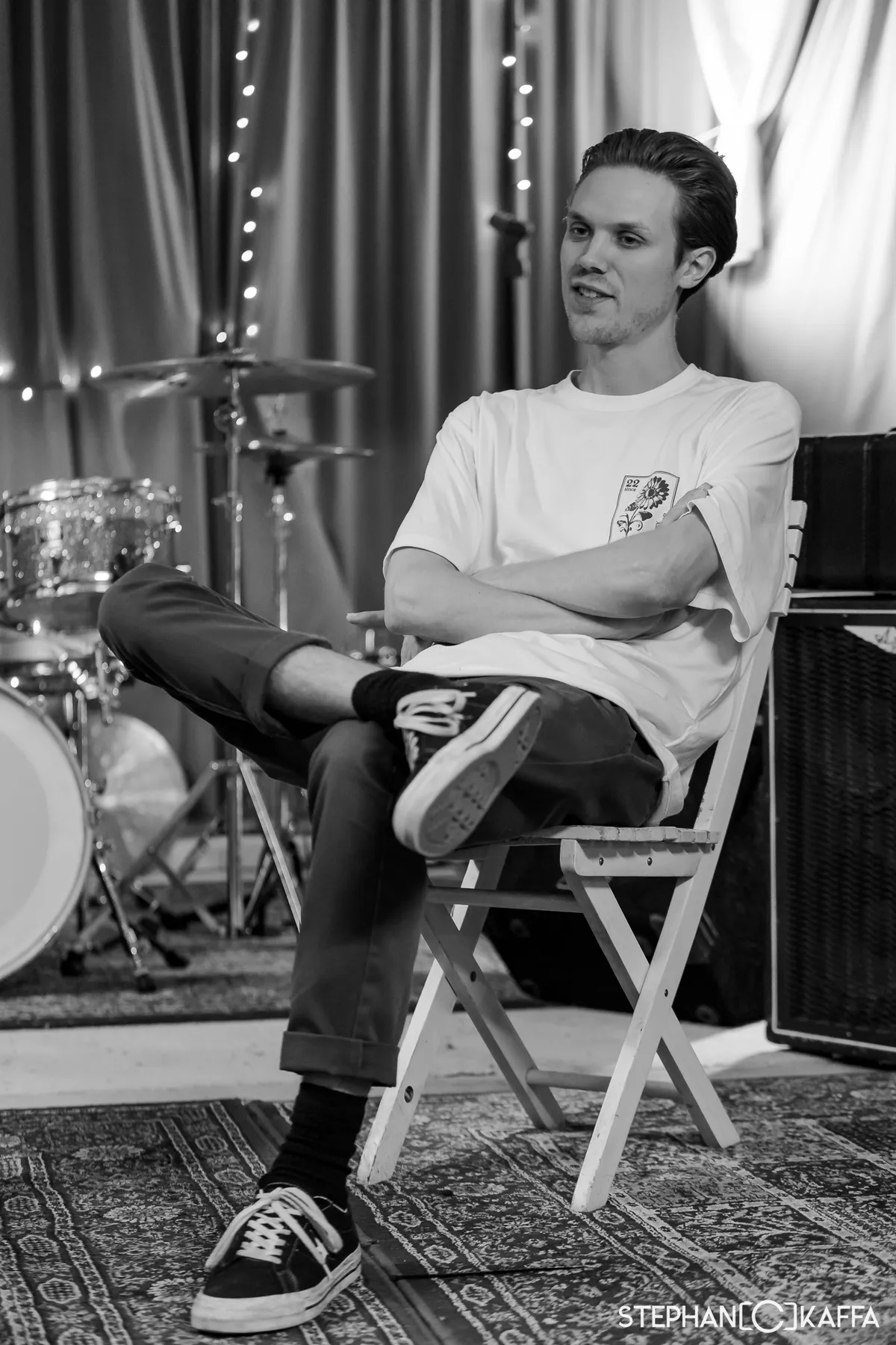Zelf luister ik niet zo heel veel Haagse bands. Ik zou zelf voor Wodan Boys kiezen, dat staat als een huis. Vervolgens begint Sam te lachen en voegt daaraan toe: maar wel als STiCKFiGS in het voorprogramma mag staan natuurlijk.