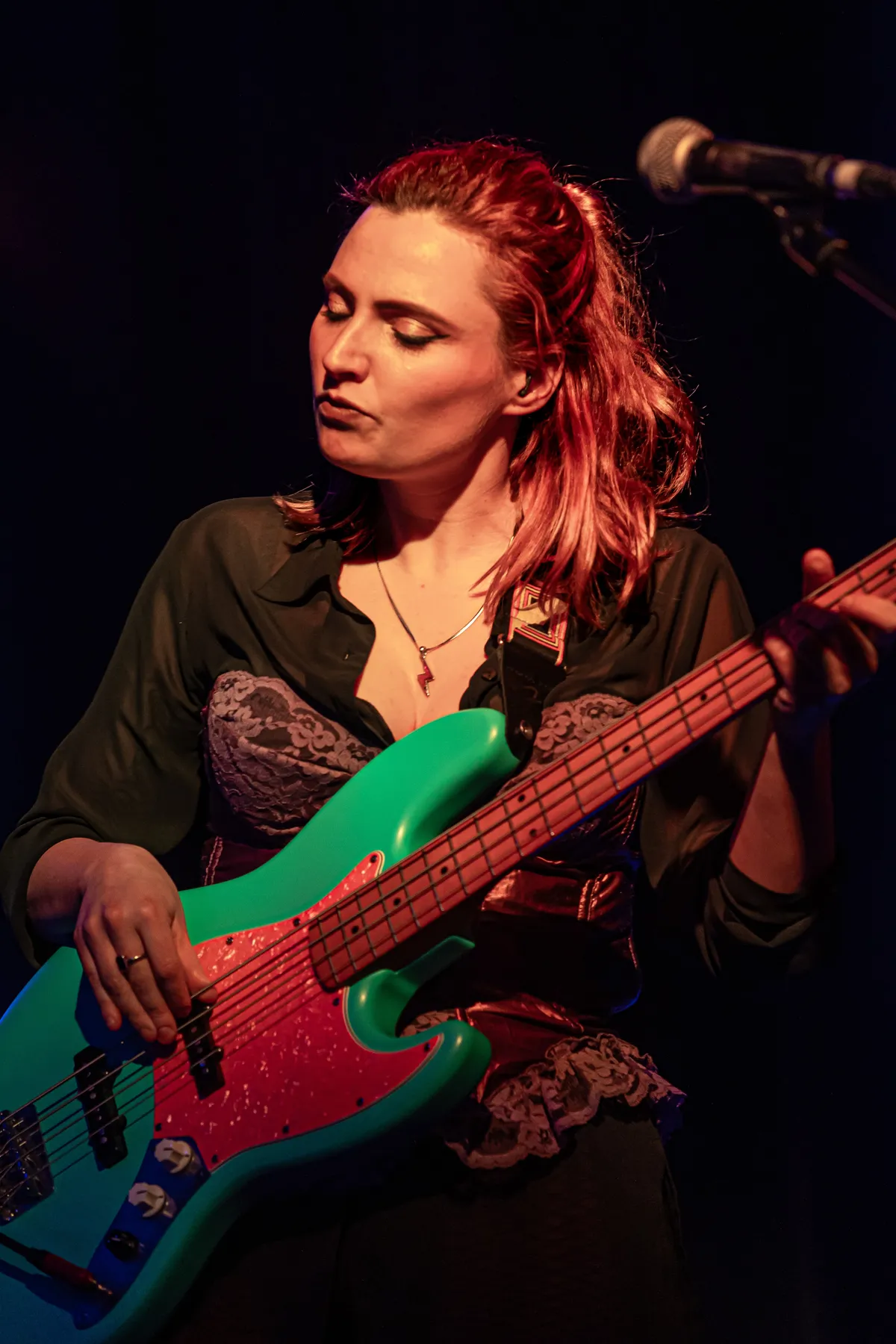 Wat bij diverse nummers echt opvalt, is hoe de flamboyante Madelief geweldige melodieuze baslijnen weet te vlechten door het creatieve drumwerk van Jos en het overtuigende gitaarspel van Eg. Zij en Eg zoeken elkaar tijdens het spelen regelmatig op en die een-tweetjes leveren een mooi intiem en krachtig podiumplaatje op. Aan de betekenisvolle blikken hier en daar kun je opmaken dat iets kennelijk nog niet helemáál zo loopt als bedoeld, maar het publiek merkt daar niks van. Wanneer Eg aan het eind van de zorgvuldig opgebouwde set ‘Nog ientje toe’ aankondigt, weet het Westfriese publiek dat het laatste nummer gaat klinken. Met End Of The World besluit Jacob’s Ladder een waardig derde optreden, met veel applaus.