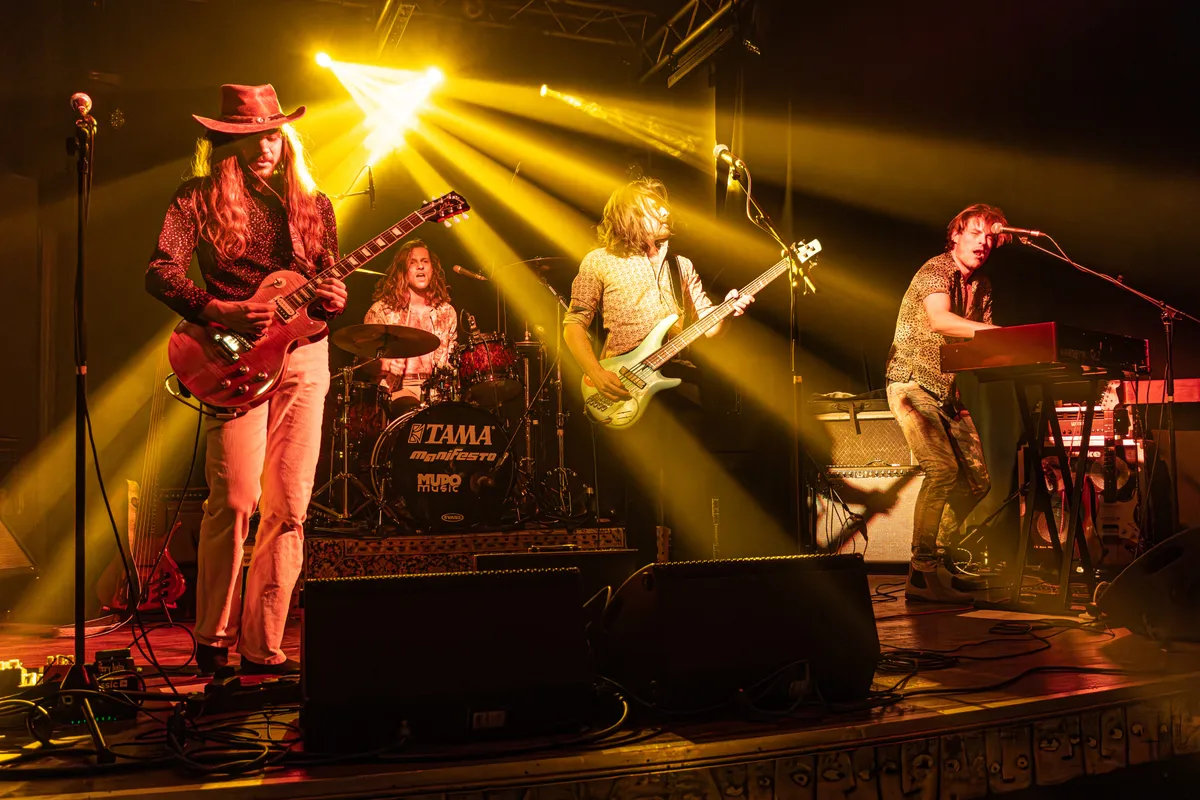De ambitieuze mannen van O.K. geven aan dat ze zijn beïnvloed door onder meer Queens of the Stone Age, Led Zeppelin en Stevie Ray Vaughan. Dat hoor je inderdaad terug op de EP Perspective die het viertal uit Enkhuizen in oktober 2023 uitbracht. De heren zijn al goed op elkaar ingespeeld en komen lekker binnen met hun opener Tonight. Qua performance is het geheel echter nog wat schuchter. Zanger/gitarist Luuk Schaper doet zijn best, maar slaggitarist Hilco Duijster en bassist Joris Koomen zijn vooral bezig hun instrument en niet met het publiek of elkaar. Het is bovendien jammer dat Joris het appje over de dresscode van vanavond niet lijkt te hebben ontvangen.