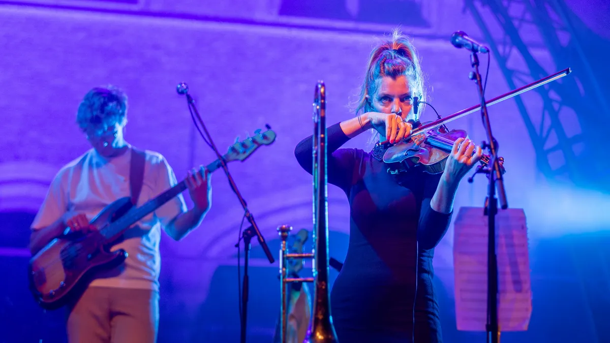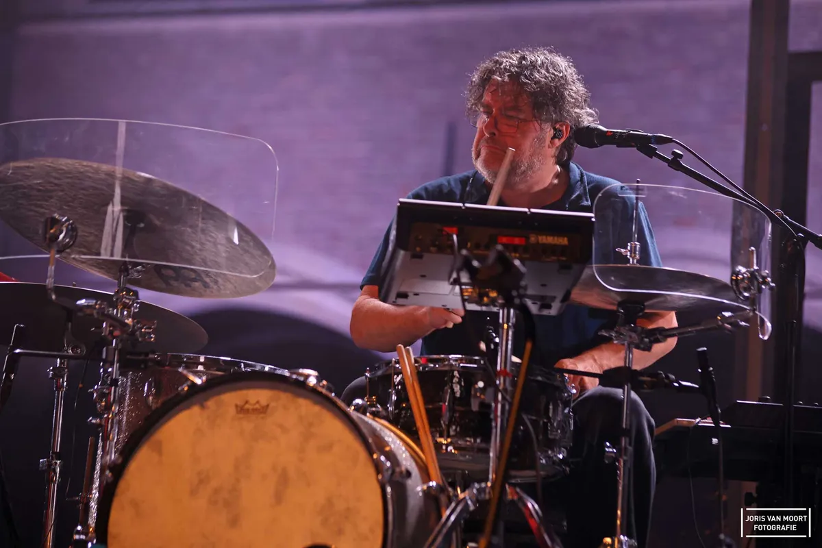 De band maakt Spinvis’ universum rijker dan ooit. Saartje Van Camp geeft met cello, zang en zingende zaag kleur en charisma, Lucas Oldeman begeleidt op piano en gitaar als trouwe sidekick. Merel Junge’s viool, de bas en synths van Jan Teerstra en de drums van de Goese Marcel van As brengen dynamiek en spanning. Van de intieme stilte bij het recente Zonder naam, over een gevallen soldaat, tot de uitbundige apotheose van Kindje van God – de band beweegt moeiteloos mee.