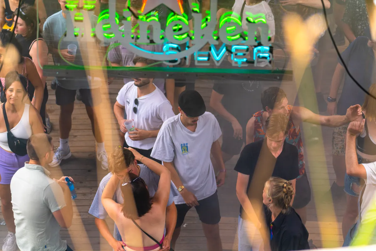 Een stage waar het Fort dan ook ècht voor zichzelf spreekt is de Nova-stage, gehost door Stranded FM. Om deze te vinden, wandel je door een donkere tunnel met trippy kunstprojecties op de muren. De stage hult zich in een oude ruïne die bekleed is met warme lichtjes en opgewekte beats. Er hangt gedurende de dag een extatische sfeer, verzorgd door de unieke duo’s achter de decks: Stranded FM zet er namelijk al de hele dag al dj-koppels bij elkaar. Het staat er tot de nok toe gevuld wanneer Jerrau en EYCEE hun set afsluiten. EYCEE draait als laatste ‘Get Your Freak On’, waar de hele crowd op losgaat. Na afloop valt iedereen elkaar in de armen. “Het is een beetje zoeken tot je het hebt, en dan ineens is het daar”, vertelt EYCEE na afloop. Hij staat nog na te hijgen. Daarna dragen ze het stokje over aan Bastienne en Dutchafro, bij velen bekend als Basje en Anna. “Anna gaat de eerste plaat inzetten, dus het zal wel grof geschut worden”, vertelt Basje vooraf. Die toon wordt zeker gezet, want het bpm gaat al vluchtig omhoog. Harde acid wordt gemixt met rauwe en industriële platen, zoals ‘66’ van Rephate. Een typische urban rave set en zoals Anna het zelf omschrijft: “Alsof je een baksteen in de wasmachine gooit op minimaal 145 bpm.”