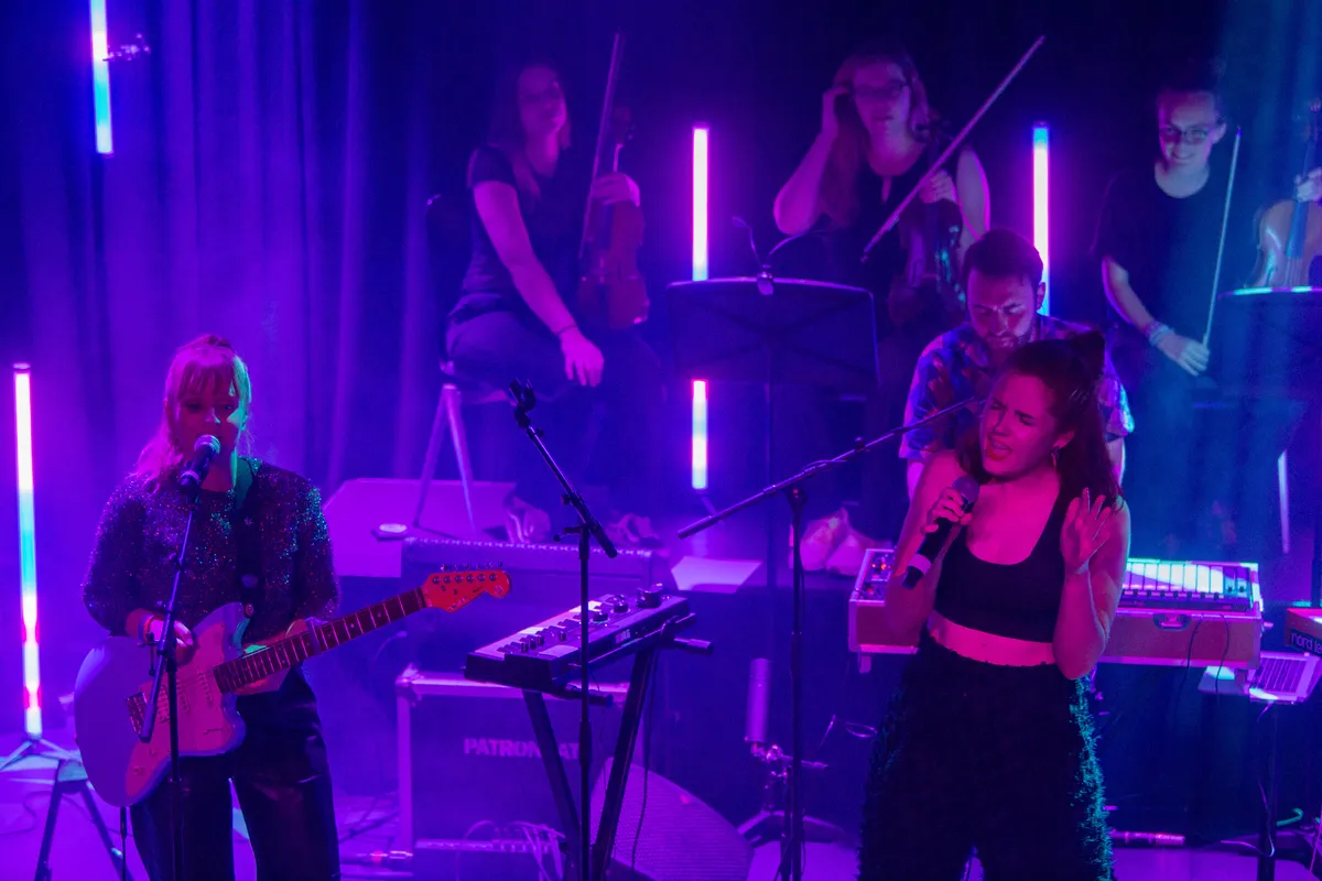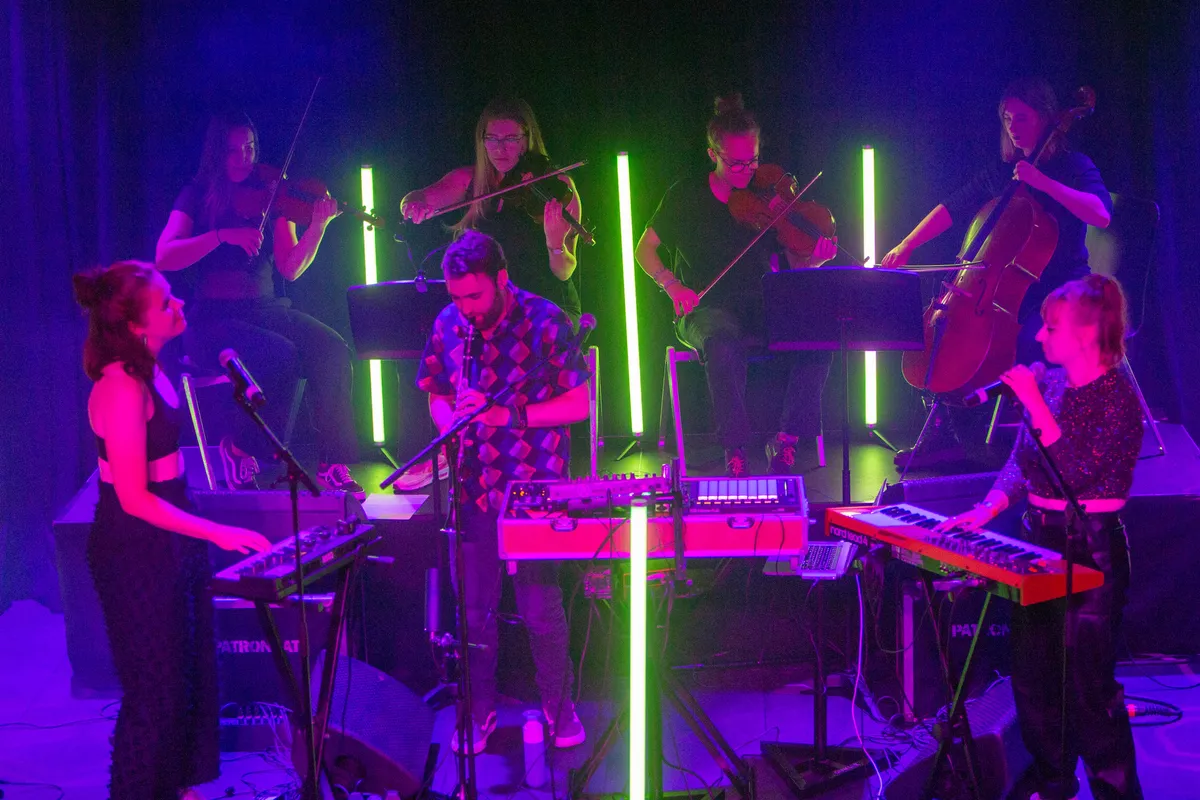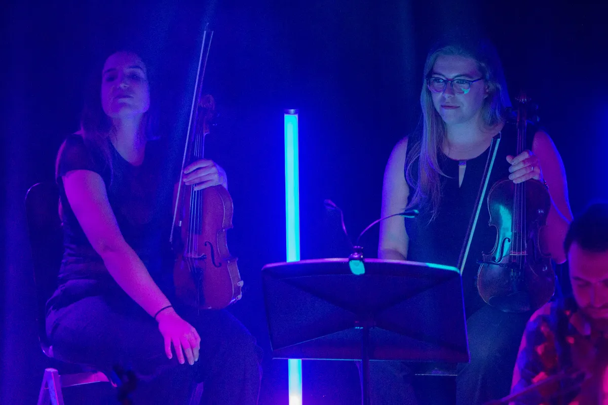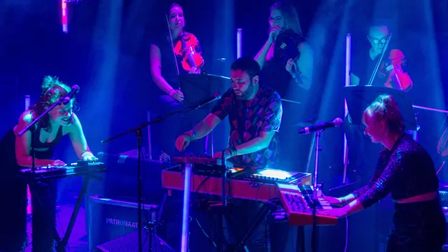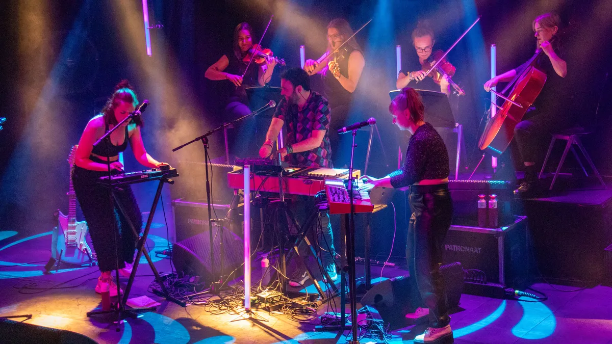 Haast klassiek wordt het met Skogkatt waarbij Dillan Sondervan de klarinet bespeelt. Daar is de link met de illustere Jean Michel Jarre wel te maken, omdat de Fransman met het orkest van Sjanghai Fishing Junks At Sunset tijdens zijn concert live heeft laten horen. In het Patronaat gebeurt het veertig jaar later nog eens in het klein, maar het doet er wel sterk aan denken. ,,Het idee met het spelen met een strijkerskwartet kwam omdat wij veel strijkers in de producties van het album hebben gecomponeerd. Stella, één van de strijkers heeft live bij ons thuis partijen ingespeeld en toen hadden wij zoiets van ‘Hoe tof zou dit zijn als we dit live met strijkers kunnen doen?!’ Stella heeft toen haar connecties met het CREA orkest ingezet en toen is de bal gaan rollen. We hebben de partijen uitgeschreven en toen stonden wij daar ineens met een heel strijkkwartet”, zegt Lowaddicts over deze toevoeging tijdens het optreden.