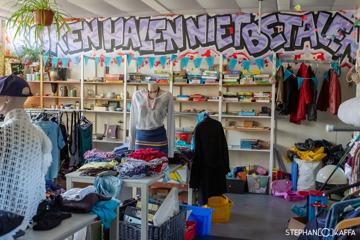 Van scheendekkers tot kinderstoelen en van kleding tot rollators, van alles is te vinden in de Weggeefwinkel. Het concept is precies zoals het klinkt; alles mag gratis mee en iedereen mag rondneuzen. We spreken met beheerder Marian Sloot: " Over het algemeen komen hier armere mensen. Mensen met kinderen waar ze kleren voor willen halen, of mooie schoenen en nette kleding voor sollicitaties. Daarnaast heeft de winkel ook een educatieve functie. Ik kom zelf uit het onderwijs en als er mensen komen die de taal niet zo machtig zijn, probeer ik ze te helpen door met ze te praten. Of kinderen een boekje te laten lezen." Niet alleen gulle buurtbewoners maar ook grotere partijen helpen de winkel zo nu en dan. "We hebben van Aegon rond de kerst een heleboel speelgoed gekregen om weg te geven. Die spullen kwamen in hele solide nieuwe verhuisdozen, die hebben wij vervolgens gebruikt om spullen te brengen naar slachtoffers van een grote brand in de Schilderswijk een poosje geleden, maar ook naar Oekraine." De winkel is open voor iedereen, ook voor mensen met een wat grotere beurs. "Iedereen mag komen kijken en iets moois meenemen, maar ik vraag aan mensen die wat meer kunnen missen wel vaak of ze nog een kleine donatie kunnen achterlaten. Meestal laten ze dan gelijk vijftien euro achter."