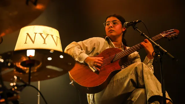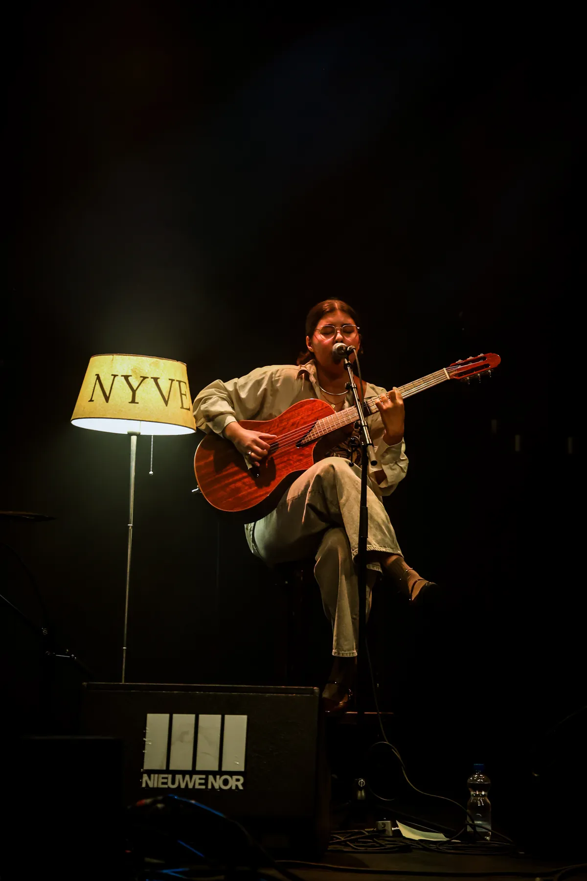 De grote en kleine zaal van de Nieuwe Nor wisselen elkaar vandaag in hoog tempo af. Via de foyer – waar Broeibak Records de hele dag vinyl laat ronddraaien – schuiven we door naar de grote zaal, waar NYVE haar set al is begonnen. Geen makkelijke opgave in een nog halflege zaal, maar de soulvolle pop met jazzy accenten vindt toch zijn weg. Denk aan Lianne La Havas en Olivia Dean: warme songs die catchy genoeg zijn om voorzichtig de heupjes op te wiegen. In deze setting, met slechtst drie bandleden, vormt het wellicht niet de meest logische keuze voor een grote zaal, maar NYVE weet wel wat harten te vullen.