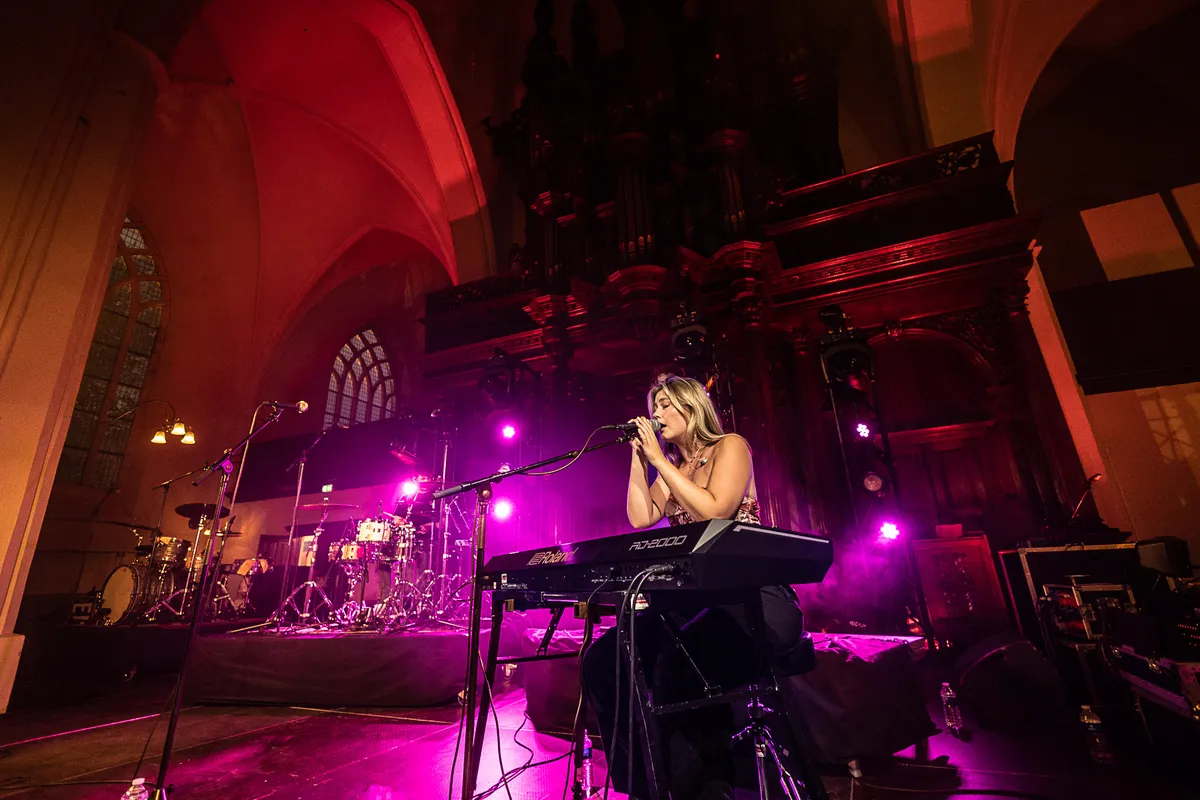 Bommen Berend Festival opent in de namiddag van 26 augustus haar deuren. Dit jaar heeft het festival een nieuwe locatie: de Aa-kerk. En het decor klopt. Het podium is zo geplaatst dat de kleine lichttorens nagenoeg parallel lopen met de pilaren onder het grote, hoge orgel. Ook de lichten, wanneer er geen zon meer door de hoge kerkramen schijnt, maken van alles een ‘neon’ gotisch geheel. Maar, hoe mooi de hoog torende plafonds ook zijn als decor voor het festival, het blijkt op momenten nogal een lastige klus te zijn voor de front of house. Desalniettemin lukt het Bommen Berend Festival om een aardige middag en avond neer te zetten. Met een line-up die bestaat uit Katie Koss, Michael Prins, Joe Buck, Maxine en EUT is het een toegankelijk pop-programma dat wordt ontdekt door een niet al te grote groep mensen in de Aa-kerk. Nadat het festival geopend is met twee door stadsdichter Myron Hamming voorgedragen gedichten, gaat het muzikale programma van start. Na een veelbelovend begin, zakt toch het momentum een beetje in tijdens het programma en is het wachten tot de bom valt. Gelukkig hebben we EUT nog.