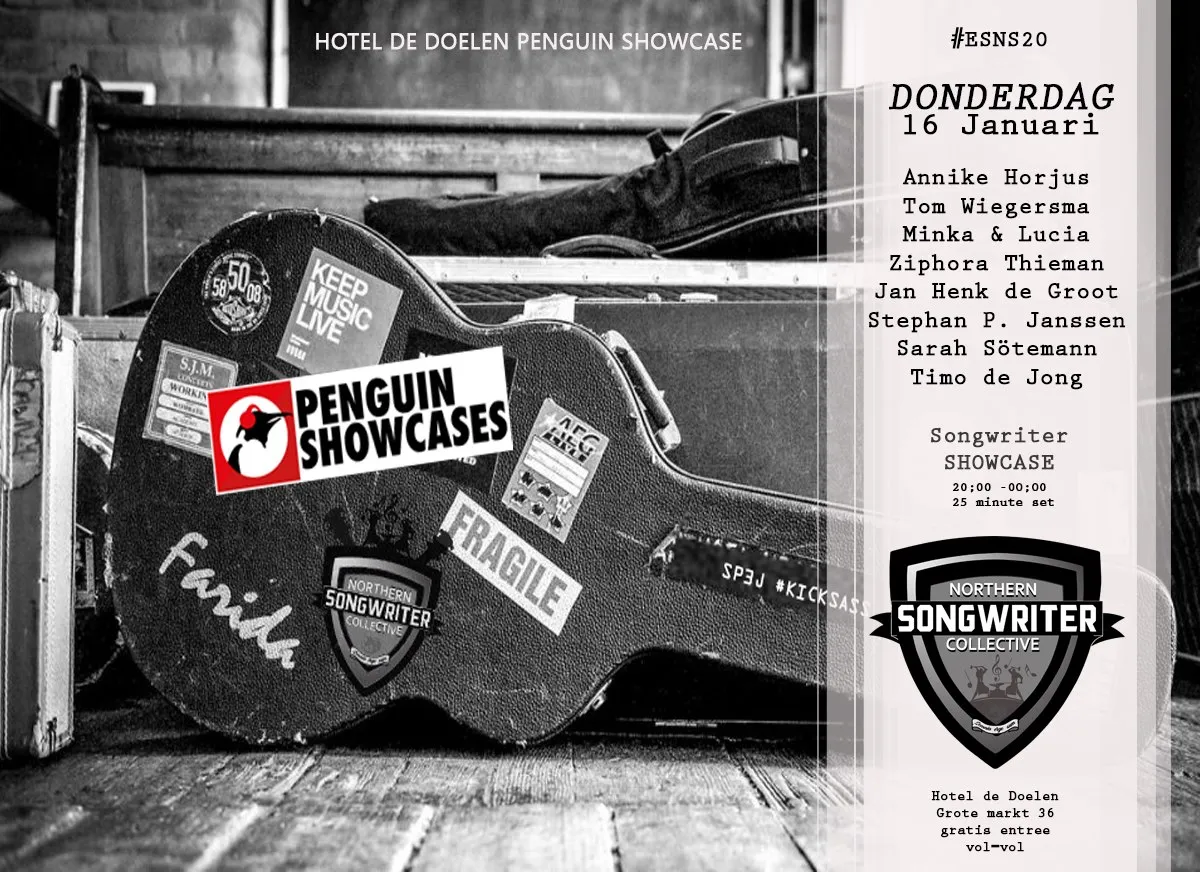 Wat: In samenwerking met www.pinguinradio.com presenteert het Northern Songwriters Collective een selectie songwriters uit de Noord in intieme setting bij het haardvuur in hotel de Doelen aan de Grote Markt.