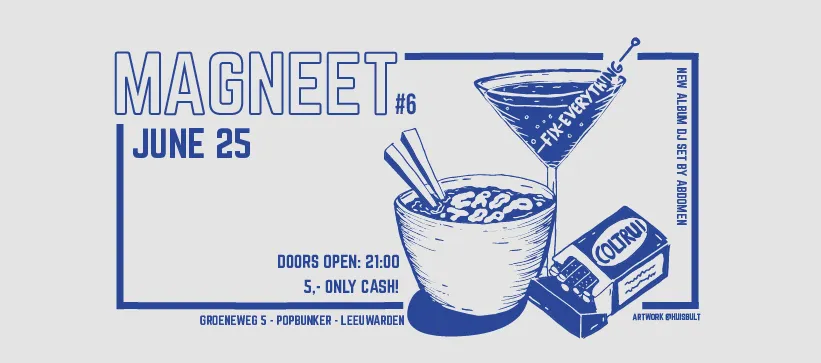 Aanstaande zaterdag 25 juni is de popbunker aan de Groeneweg in Leeuwarden eindelijk weer het domein van MAGNEET. Hét undergroundfeestje van de provincie waar je een dikke dosis rammelende, schoenenstarende bak herrie tot je kan nemen. Corona eruit, post-punk/shoegaze/noise/garage/indie er in. In de bunker pluggen er een drietal acts in, namelijk: Fix Everything en Croptop uit Amsterdam en Coltrui uut Ljouwert.