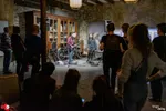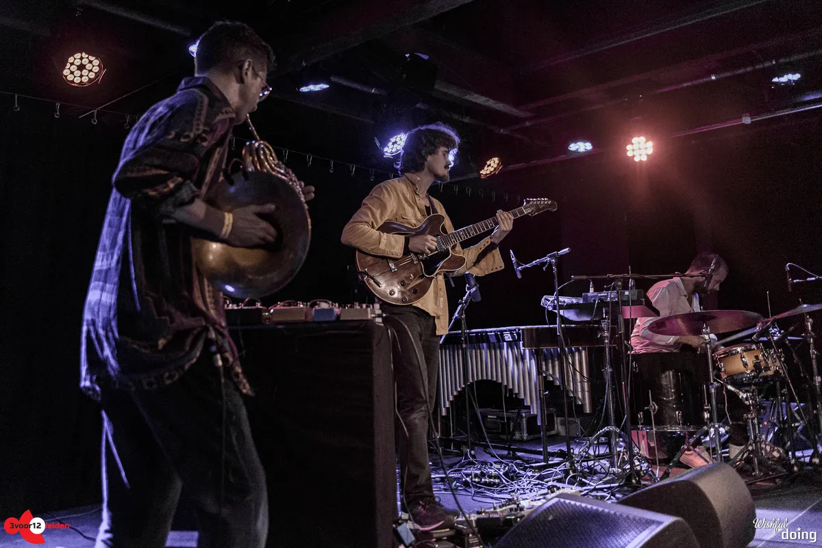 We steken de straat over voor de Amsterdamse indiejazzband Kapok in de theaterzaal van Scheltema. Ook buiten in de steeg is het gezellig. Omdat deze gig onderdeel is van hun laatste tour, improviseert Kapok bijna hun hele optreden. Dat levert verrassende klanken op. Timon Koomen tovert het ene na het andere wonderlijke geluid uit zijn gitaar. Morris Kliphuis voegt er met zijn hoorn en trompet afwisselend ruimtelijke, mysterieuze klanken of juist wat meer ritmische themaatjes aan toe. Drummer Remco Menting voorziet het geheel van al dan niet melodisch slagwerk, soms zelfs bespeeld met een strijkstok (!). Op andere momenten volstaat hij echter ‘gewoon’ met in zijn handen klappen, wat ook weer heel inventief overkomt. Imponerend, deze veelzijdigheid.